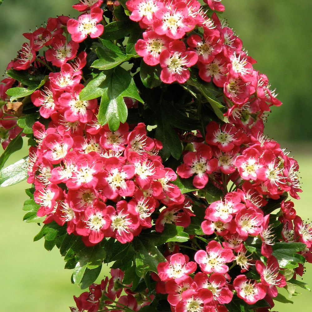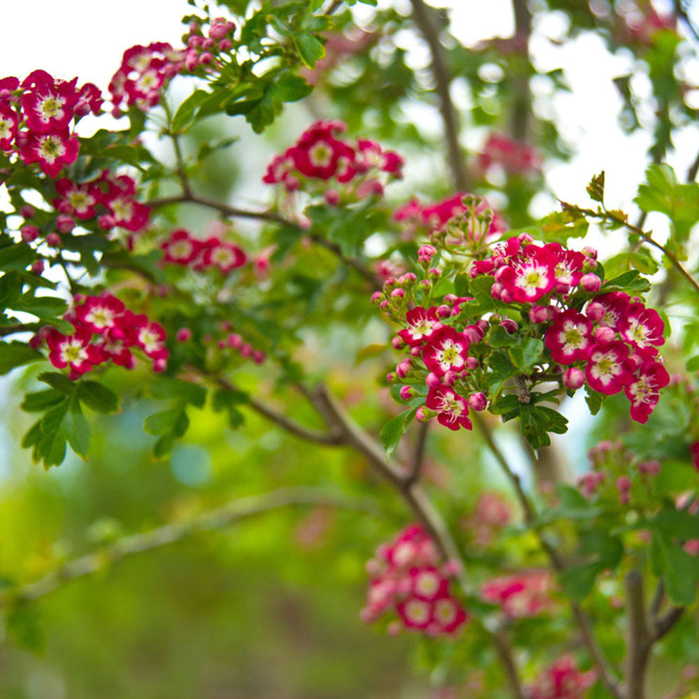 This award winning tree is perfect for a small to medium sized garden, where it will add a splash of brilliant colour to your landscape in spring and autumn. The Crataegus Laevigata 'Crimson Cloud' bursts with an abundance of single, pink-red flowers with creamy white centres in May. The flowers are set against a canvas of lush, glossy green foliage, creating a stunning contrast. The leaves are deeply lobed and turn to a bronze and golden yellow in autumn. The autumn season also sees the appearance of a smattering of red haws.