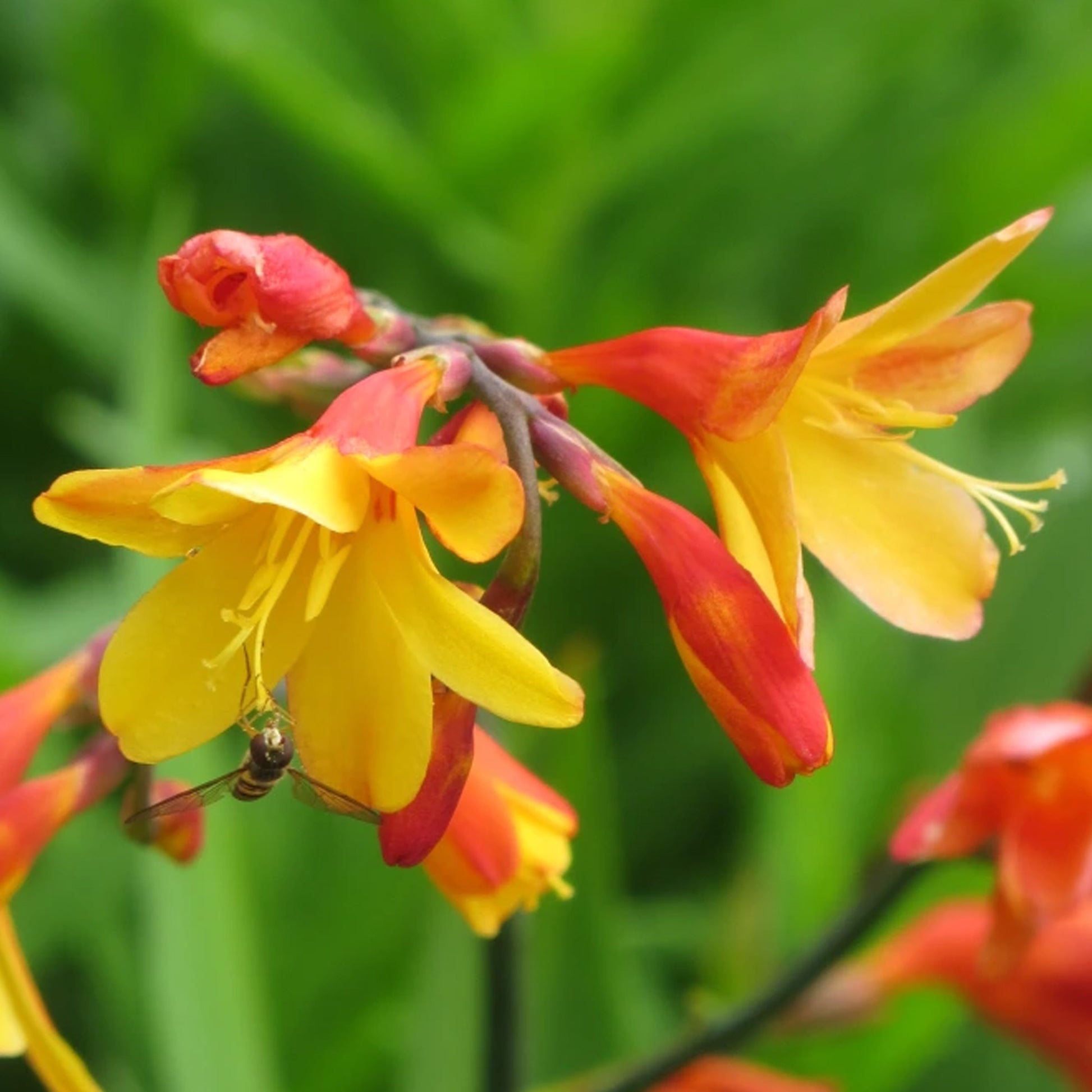Crocosmia thrives in full sun and well-drained soil. Divide clumps every 3-4 years to prevent overcrowding and promote better blooming.