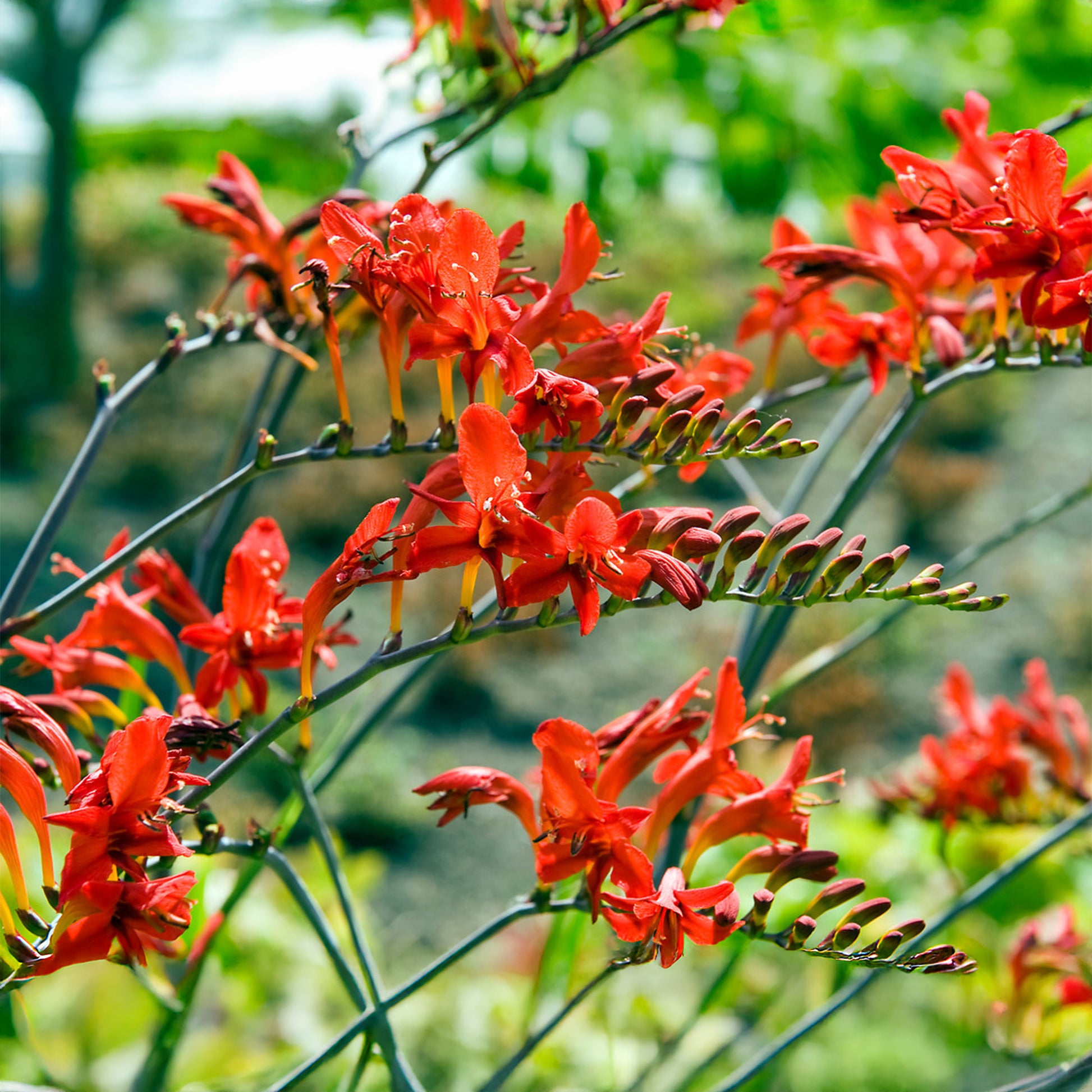 This hardy perennial thrives in sunny borders, creating vibrant displays from midsummer into early autumn. Crocosmia corms are low-maintenance and easy to grow, making them suitable for gardeners of all experience levels. Protect from frost in colder regions with mulch or lifted storage during the winter months. Plant alongside dahlias and lilies for a coordinated summer display.