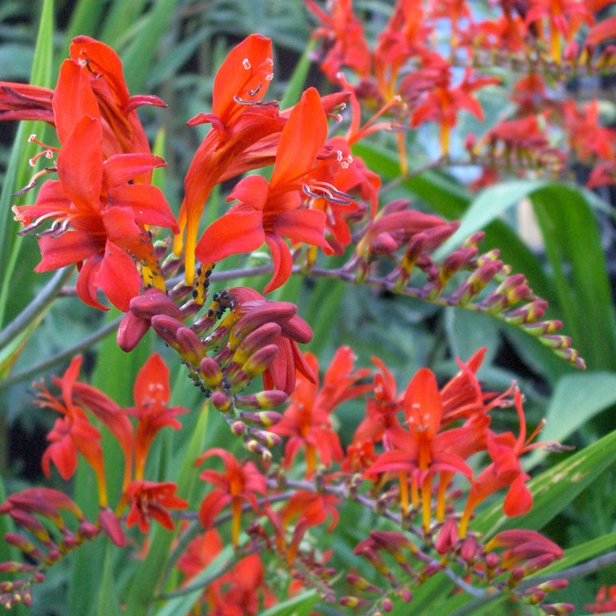Apply a tomato fertiliser fortnighly throughout summer to encourage pot-grown crocosmias to flower more.