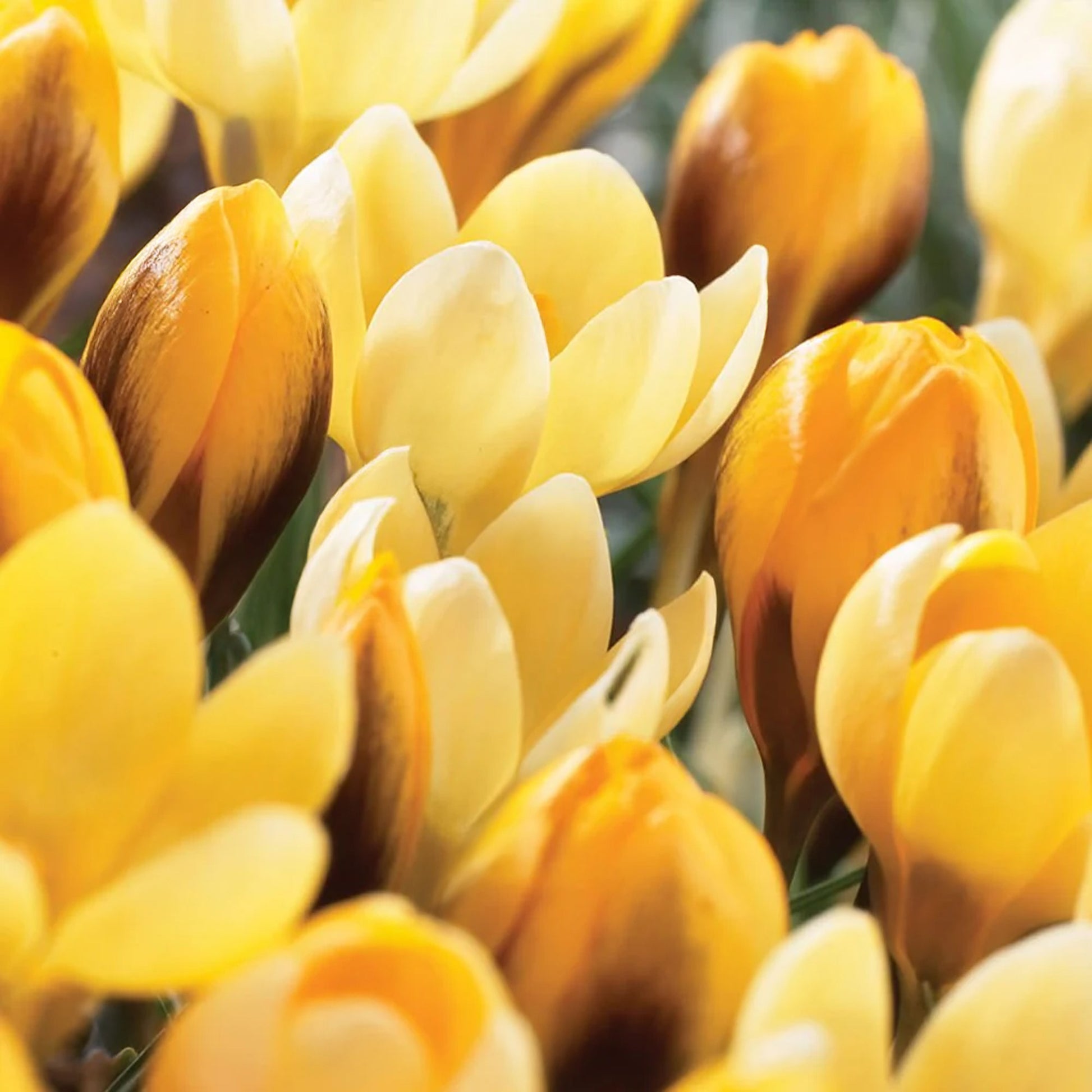 Crocus announce that spring is coming and some of the earliest flowers to bloom. Crocus develop from a tuber called “corms”, the technical name for the flower bulb. Spring Crocus are some of the earliest blooms of the season and have been known to come out even when snow is still on the ground. Easter colours of the Crocus include a rainbow of rich lavender purples, showy pinks and golden yellow hues. Crocus leaves are generally green and strap or thick grass-like in appearance.