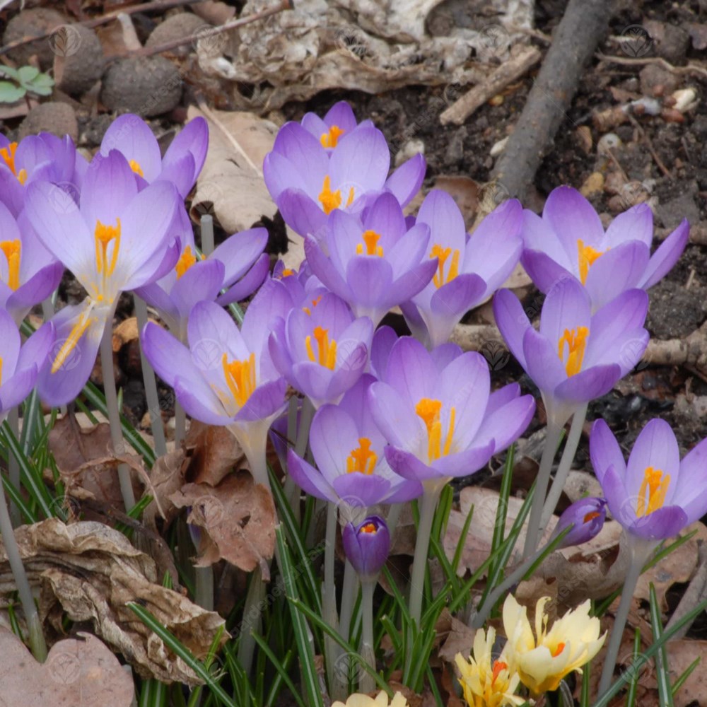 Crocus announce that spring is coming and some of the earliest flowers to bloom. Crocus develop from a tuber called “corms”, the technical name for the flower bulb. Spring Crocus are some of the earliest blooms of the season and have been known to come out even when snow is still on the ground. Easter colours of the Crocus include a rainbow of rich lavender purples, showy pinks and golden yellow hues. Crocus leaves are generally green and strap or thick grass-like in appearance.