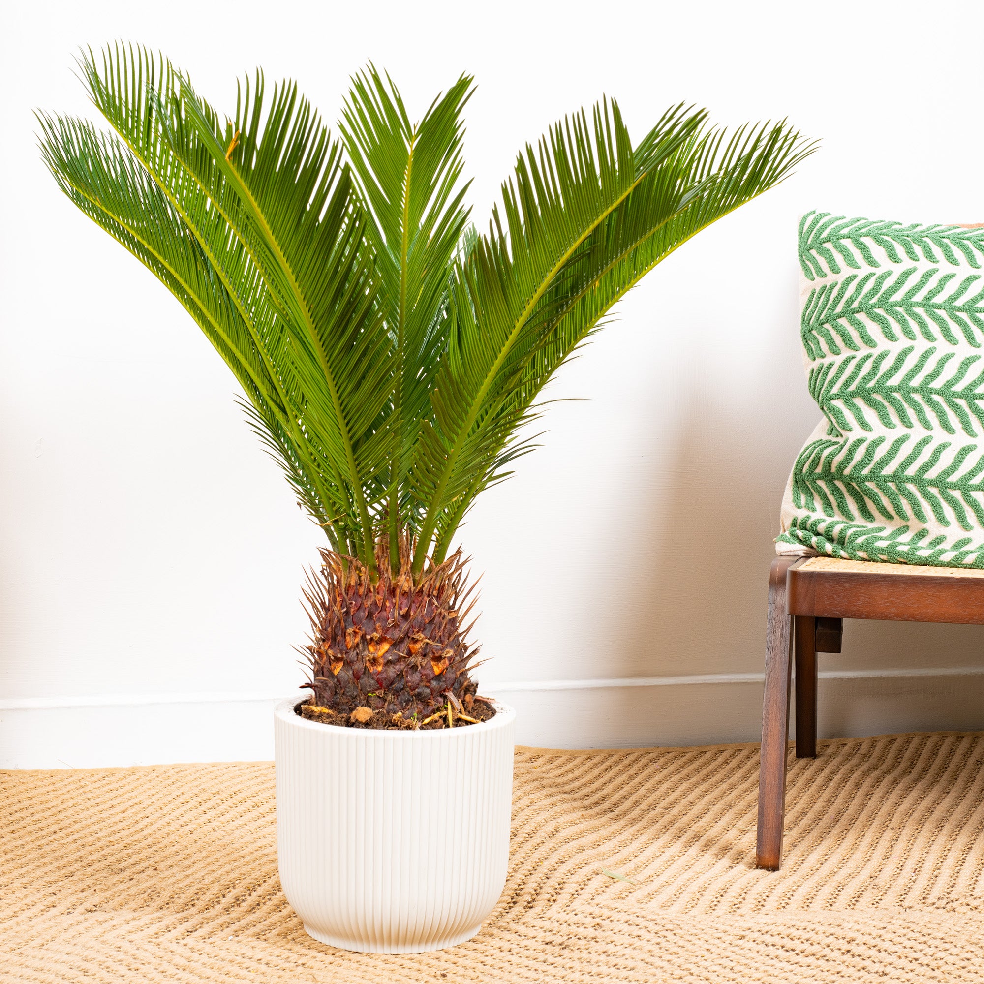 Cycas Revoluta, commonly known as the sago palm, is a popular houseplant that is native to the subtropical regions of Japan. It is known for its dramatic, feathery fronds that grow from a central base, giving it a bold and striking appearance.