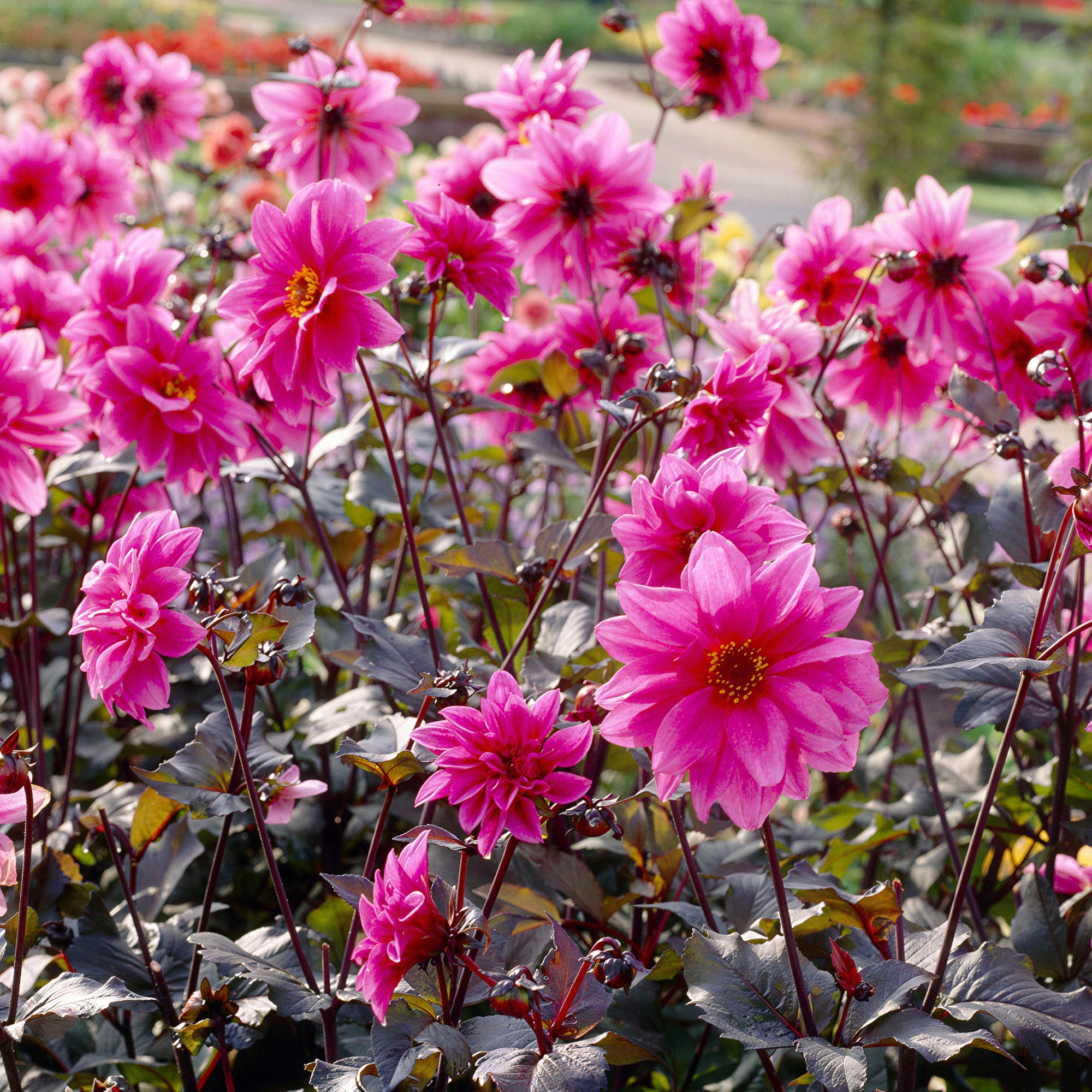 Caring for Dahlia Arthur Hambley is pleasantly straightforward. Plant the tubers in spring in well drained soil and choose a sunny, sheltered spot where they can grow tall and flourish. Keep them well watered during dry spells and feed regularly to support strong stems and continuous flowering. As autumn descends, lift and store the tubers in a frost free place, or mulch heavily in milder areas. With just a little attention, these Dahlias will reward you year after year with their soft, romantic blooms and reliable performance.
