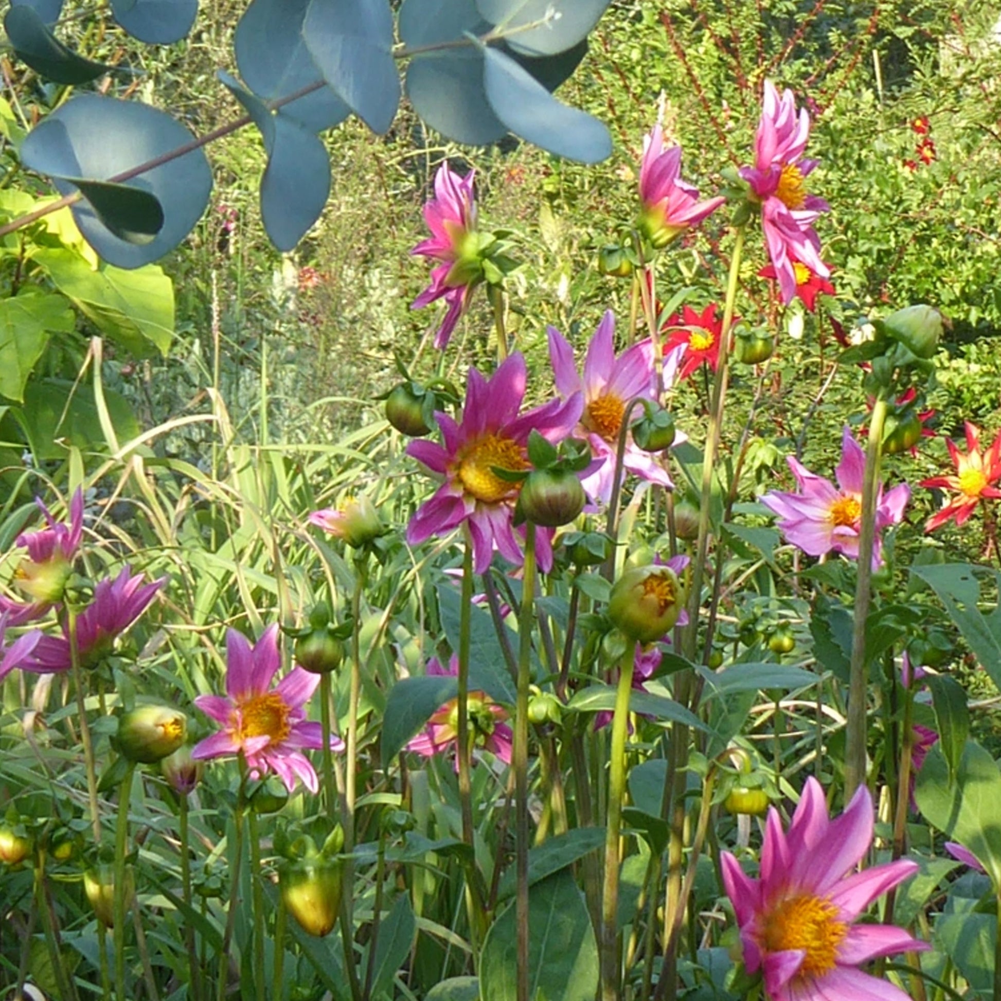 Dahlias prefer a sunny, sheltered spot in fertile, moist but well-drained soil. In late spring, after the risk of frost has passed, plant the tubers either in the ground or in pots, around 10cm deep and with 30-50cm spacing between bulbs. Water in well after planting and water regularly during dry spells as the plants grow and flower. Deadhead spent flowers to encourage a second flush of blooms. Once the flowers and foliage have died back for the season, cut the plants down to ground level and add plenty of mulch to protect the tubers from frosty temperatures. In colder areas, or where the soil is prone to waterlogging, it’s best to dig up the bulbs and store them over winter to re-plant in spring.
