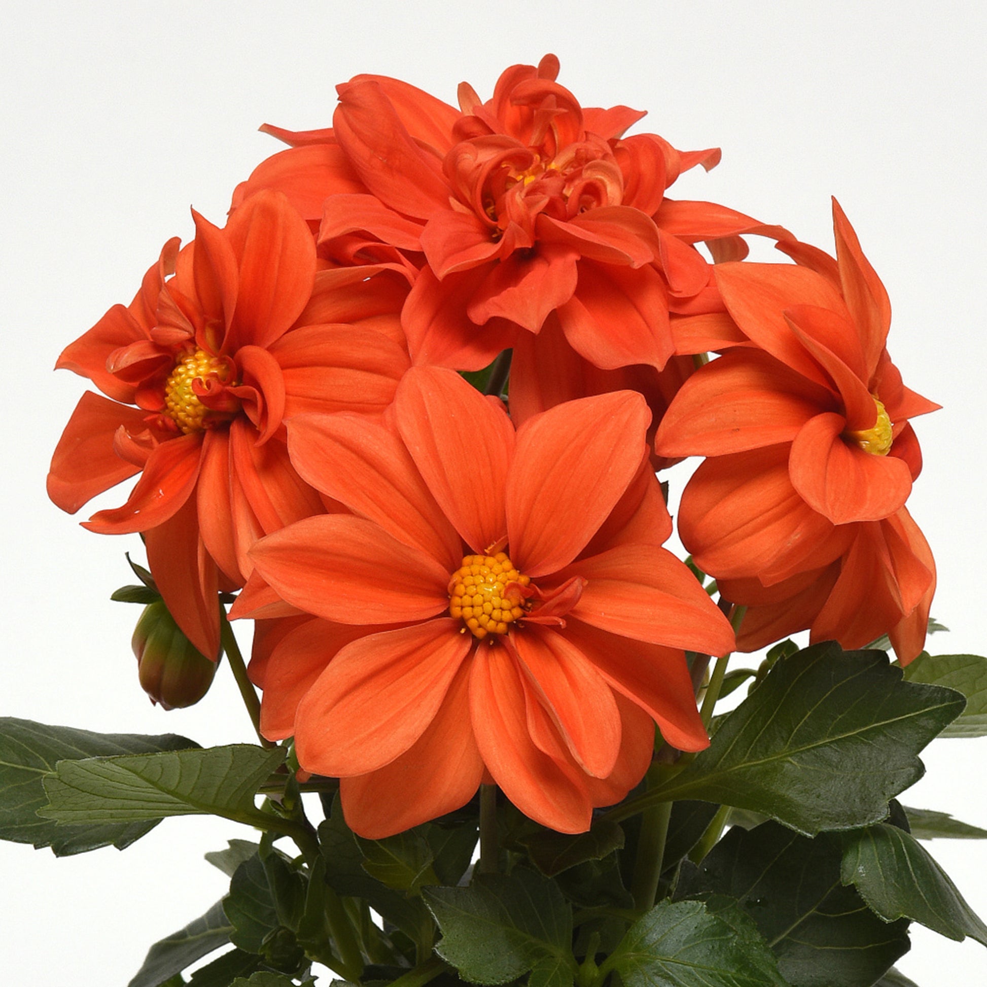 This six pack of Dahlia Figaro Orange Shades bedding plants will create a fiery display and are the highlight of any late summer garden. A fast-growing dwarf dahlia variety with a compact, bushy, upright habit that produces impressive double orange blooms. This wonderful, extremely long-flowering plant will bloom from June all the way through to October, perfect for creating beautiful, long-lasting displays of vibrant colour. Dahlias are usually grown as annuals but with their tubers they are actually perennials. Lift them in autumn and store over the winter, ready to plant out again the following spring. They are edible flowers but their flavour and textures can vary greatly depending on their growing conditions.