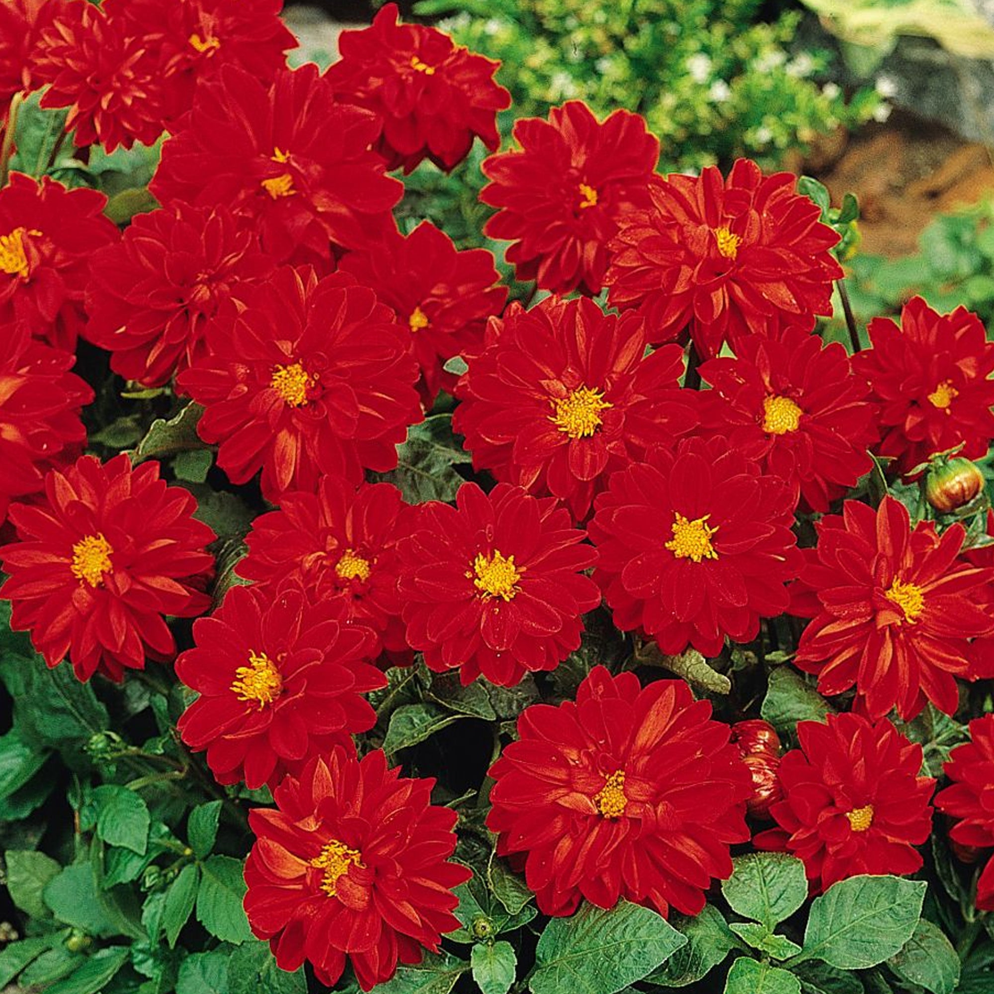 This six pack of Dahlia Figaro Red Shades bedding plants will create a long-lasting display with a bold colour theme. This classic dwarf dahlia variety with a compact, bushy, upright habit produces stunning double red blooms. A fast growing and long flowering plant with their blooms enjoyed from June all the way through to October. Dahlias are usually grown as annuals but with their tubers they are actually perennials. The tubers are lifted in autumn and stored over the winter, ready to plant out again the following spring. They are edible flowers but their flavour and textures can vary greatly depending on their growing conditions.
