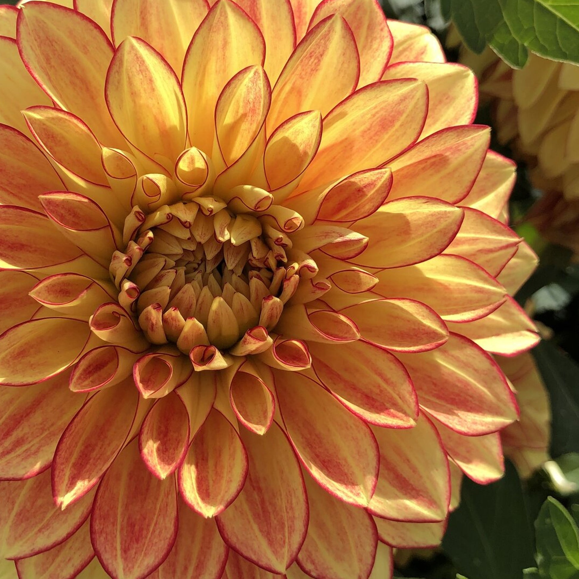 Colourful and cheerful, Dahlia Lake Ontario produces a vibrant show of large, vibrant blooms that last from early summer right through to the first frosts. The fully double flowers boast an abundance of golden-yellow petals flushed and edged with red, creating a beautiful visual effect.