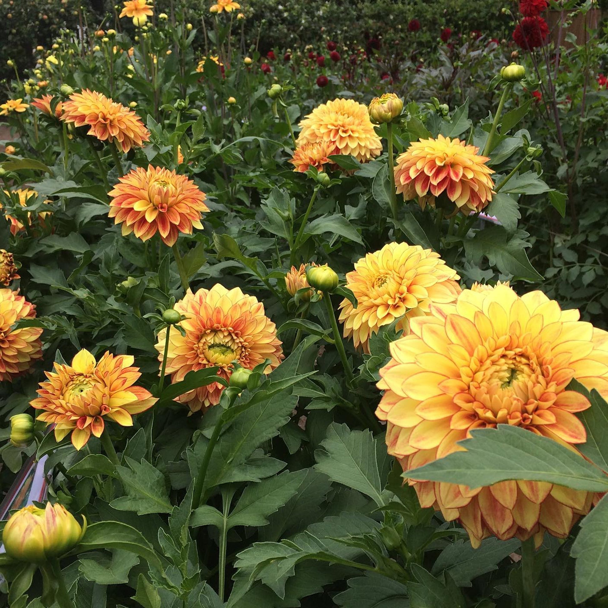 Dahlias prefer a sunny, sheltered spot in fertile, moist but well-drained soil. In late spring, after the risk of frost has passed, plant the tubers either in the ground or in pots, around 10cm deep and with 45-60cm spacing between bulbs. Water in well after planting and water regularly during dry spells as the plants grow and flower. Deadhead spent flowers to encourage a second flush of blooms. Once the flowers and foliage have died back for the season, cut the plants down to ground level and add plenty of mulch to protect the tubers from frosty temperatures. In colder areas, or where the soil is prone to waterlogging, it’s best to dig up the bulbs and store them over winter to re-plant in spring.