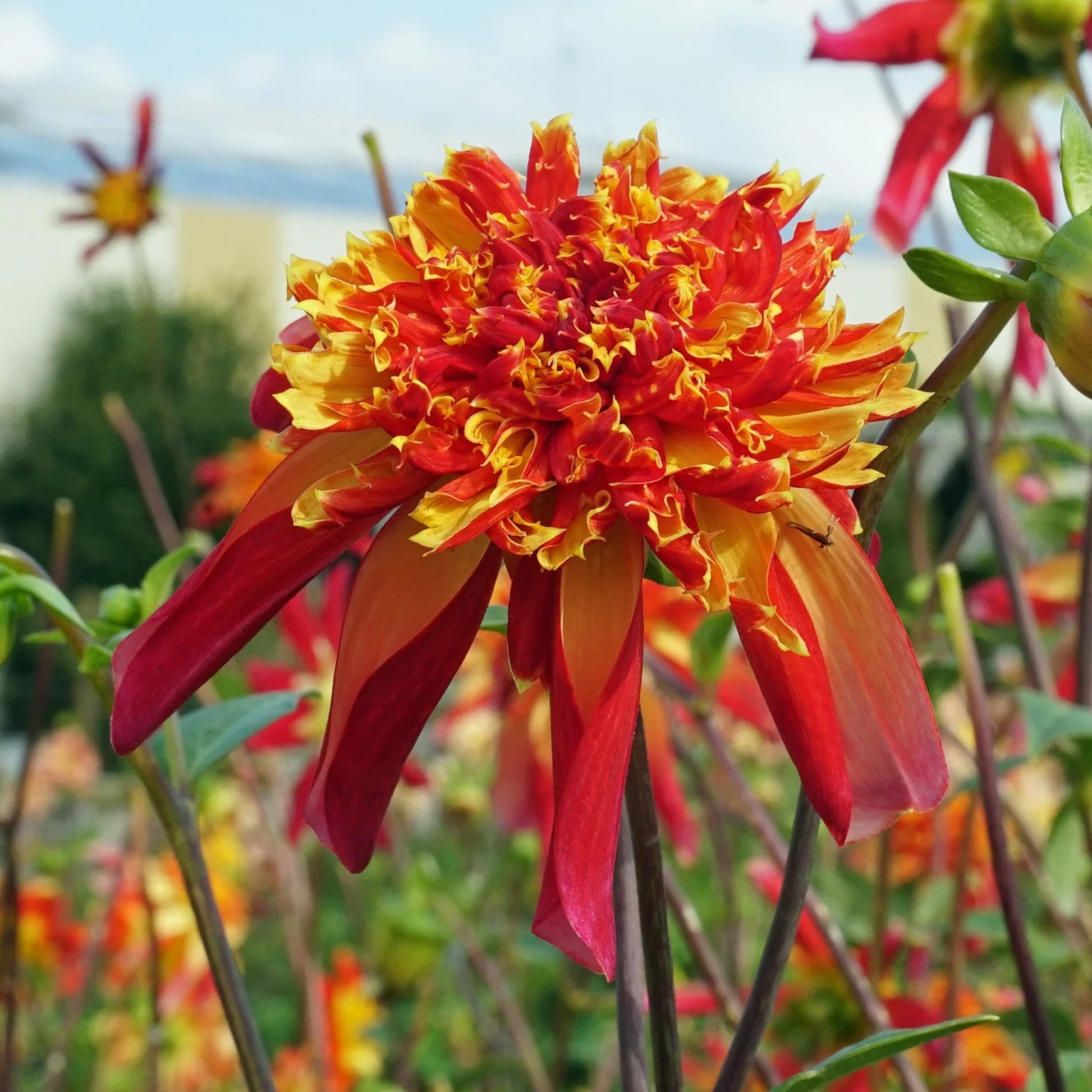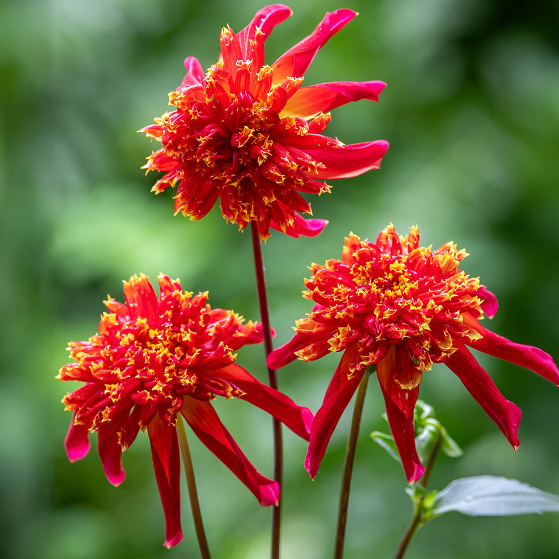 These dahlia bulbs produce intriguing flowers with long petals resembling the tentacles that give Octopus Sparkle its name. With the shape of both an orchid-type and an anemone-type dahlia, these unusual blooms are coral-red and bright yellow in colour and are perfectly complemented by rich green foliage.