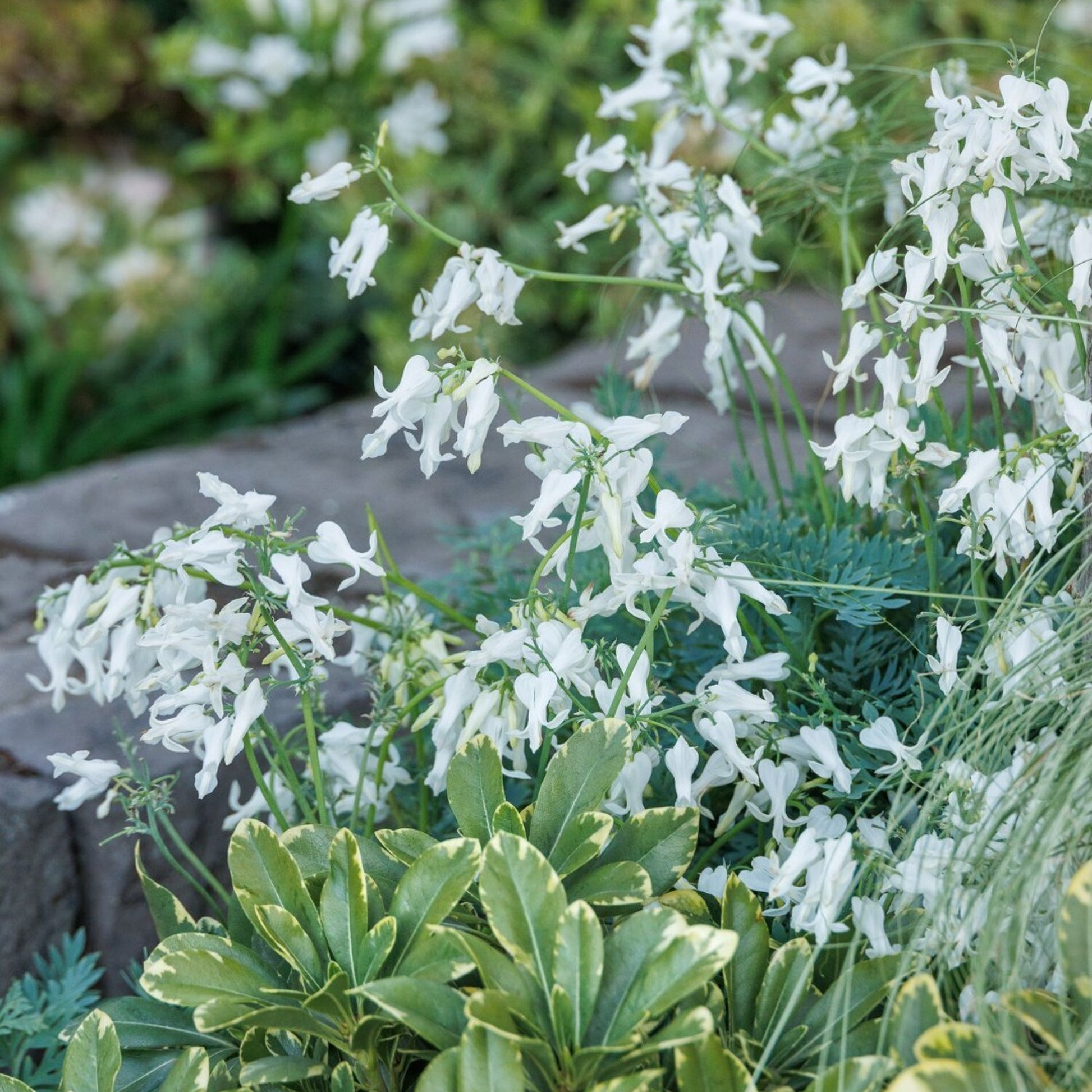 A perfect addition to cottage and woodland gardens, Dicentra Amore Titanium provides an extended season of interest with its long-lasting white flowers. Its delicate blooms attract pollinators, supporting garden biodiversity. With its compact form and reliable performance, this perennial is a must-have for those looking to brighten shaded areas with elegant, low-maintenance beauty.