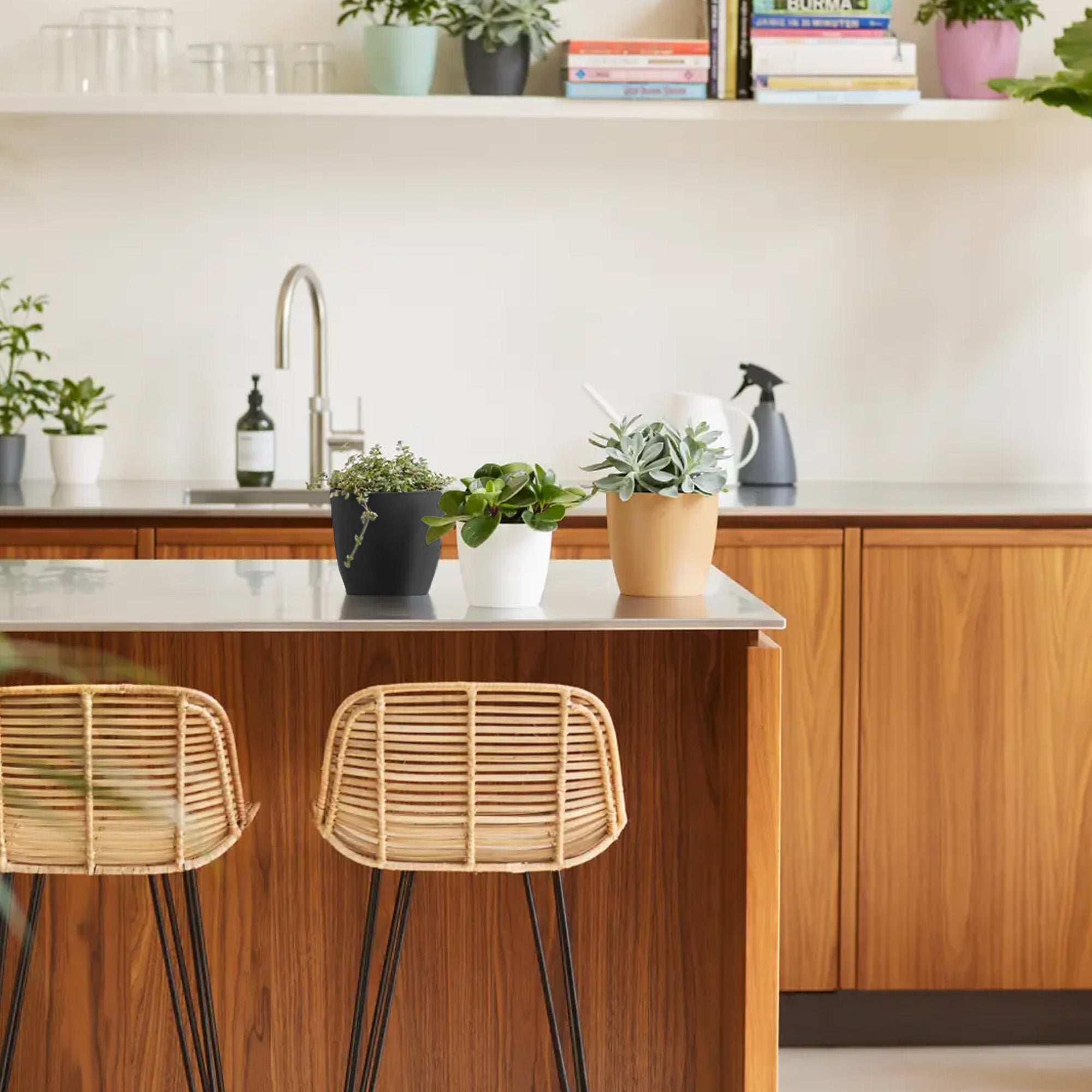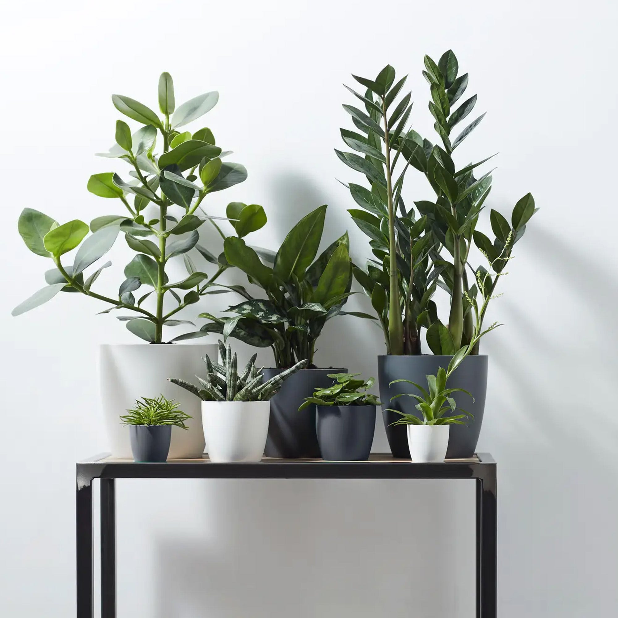 The range of size options available ensures a smooth and rounded home for plants of many sizes, that beautifully complements both the lovely colour and greenery above.