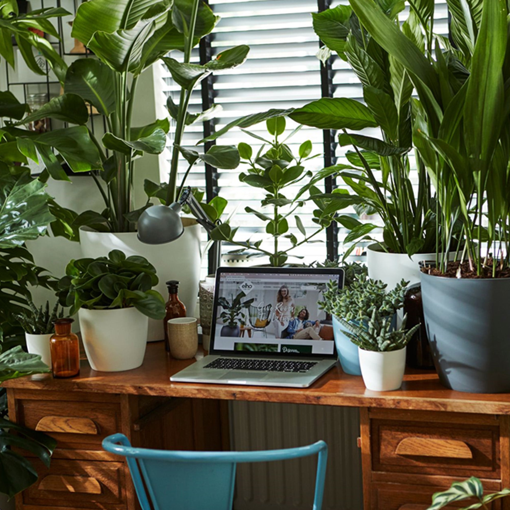 The range of size options available ensures a smooth and rounded home for plants of many sizes, that beautifully complements both the lovely colour and greenery above.