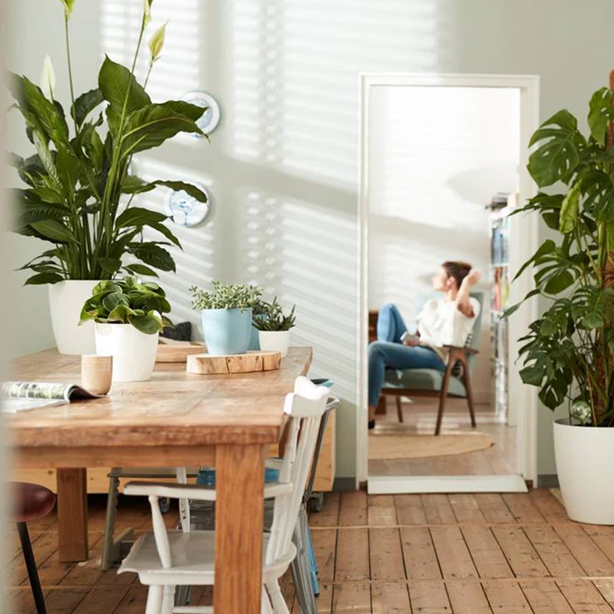 The range of size options available ensures a smooth and rounded home for plants of many sizes, that beautifully complements both the lovely colour and greenery above.