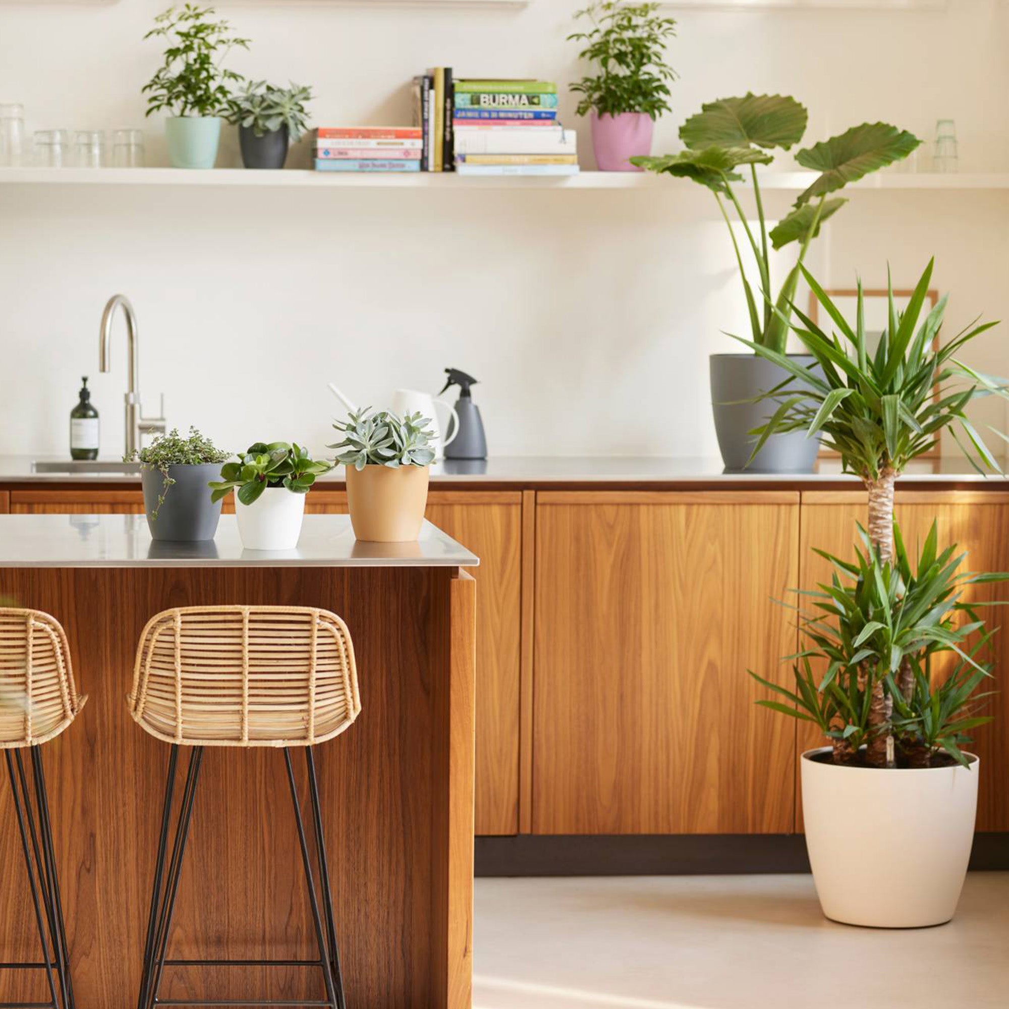 The range of size options available ensures a smooth and rounded home for plants of many sizes, that beautifully complements both the lovely colour and greenery above.