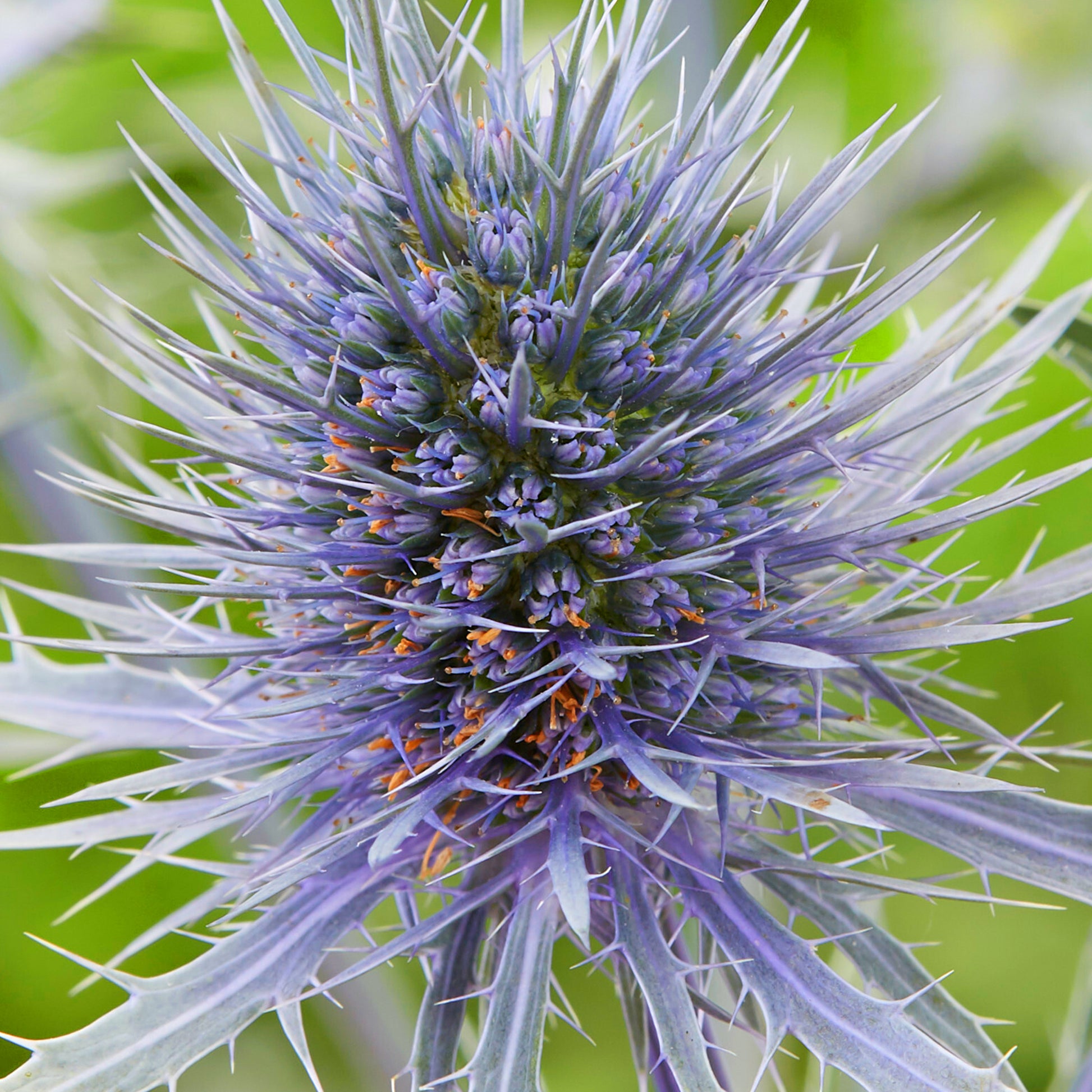 Eryngium prefers poor, well-draining soil and minimal fertilization for best growth and blooms. Deadhead to encourage prolonged flowering.