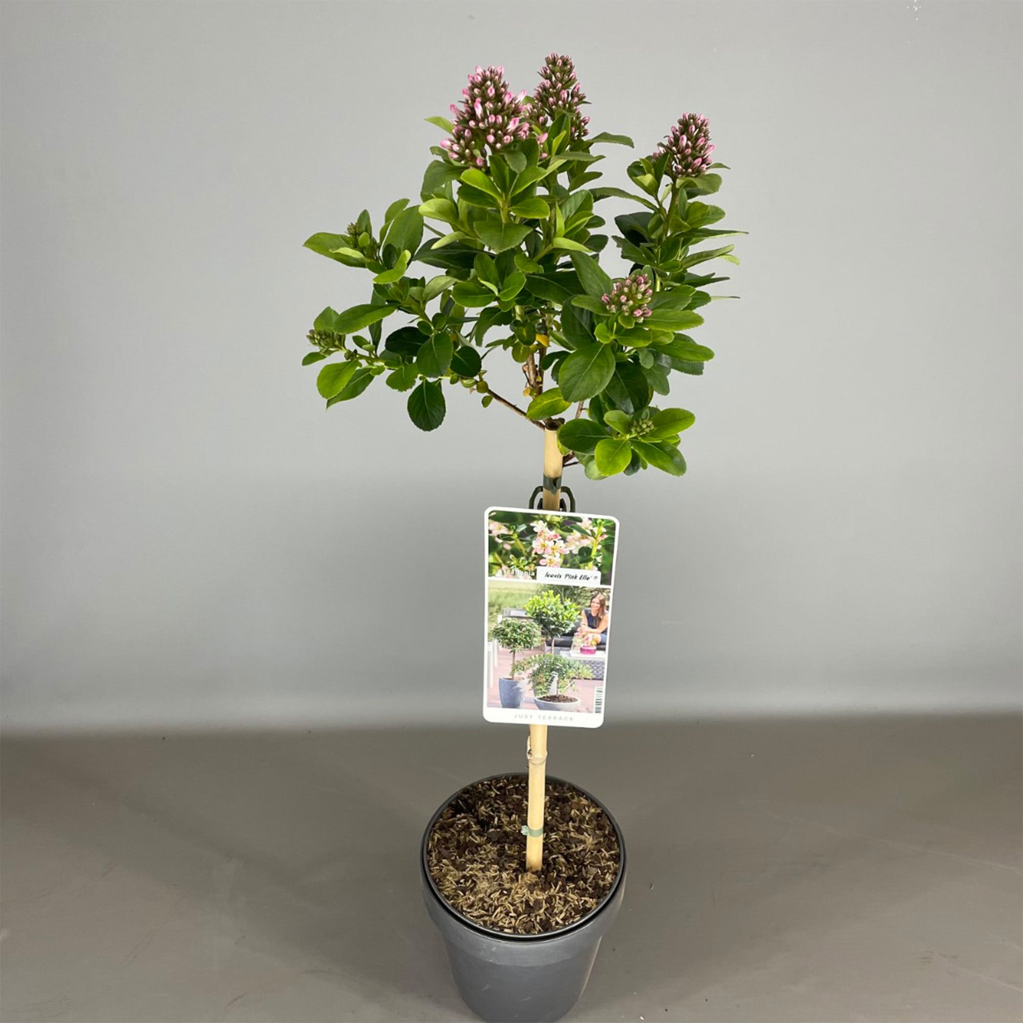 This patio tree is hardy in milder parts of the UK, tolerating temperatures as low as -5 °C. Additional insulation is needed during the winter months to protect the roots against frost damage. Excallonia Pink Elle thrives in moist, well-draining soil and is happy in most soil types. Like all plants, pot-grown specimens do need to be watered more frequently. This potted tree tolerates partial shade but flourishes best placed in full sun.