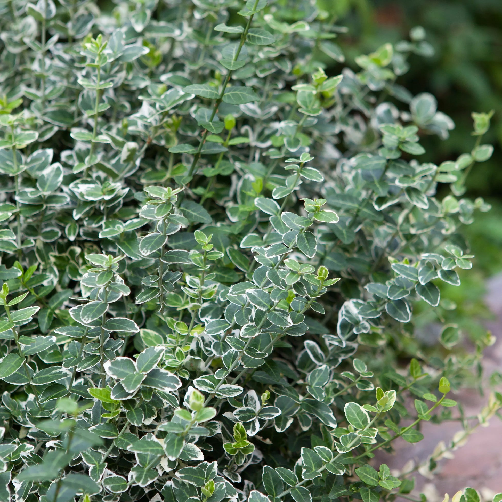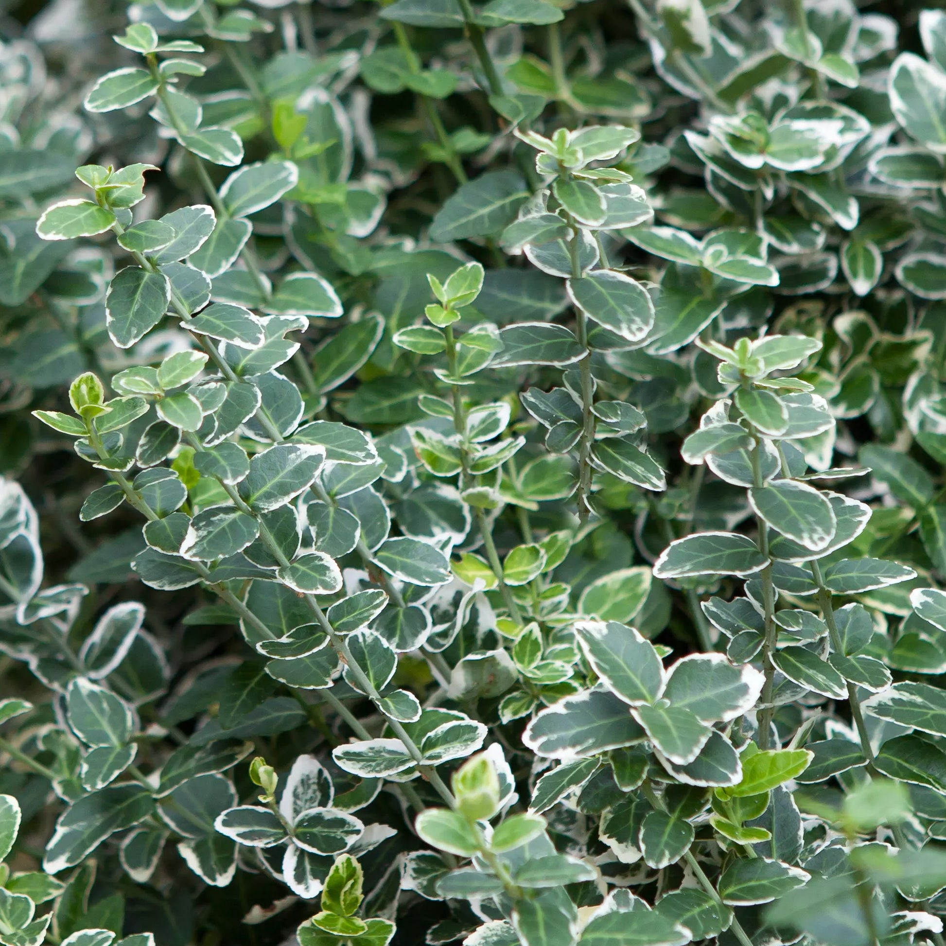 Euonymus ‘Kathy’, also known as the Japanese Spindle Shrub, is a lovely and easy to grow addition to any garden. The bright, glossy green leaves grow evergreen for year-round interest and carry variegated patterns of silver-white along the leaf edges. You may occasionally also see small, pale-green flowers emerge throughout the foliage to add a more colour to the already dense, bushy shrub. A great option for smaller gardens as it will grow quite rounded and compact, making it easy to manage and suitable for container planting, or as part of small shrub beds and rockeries.