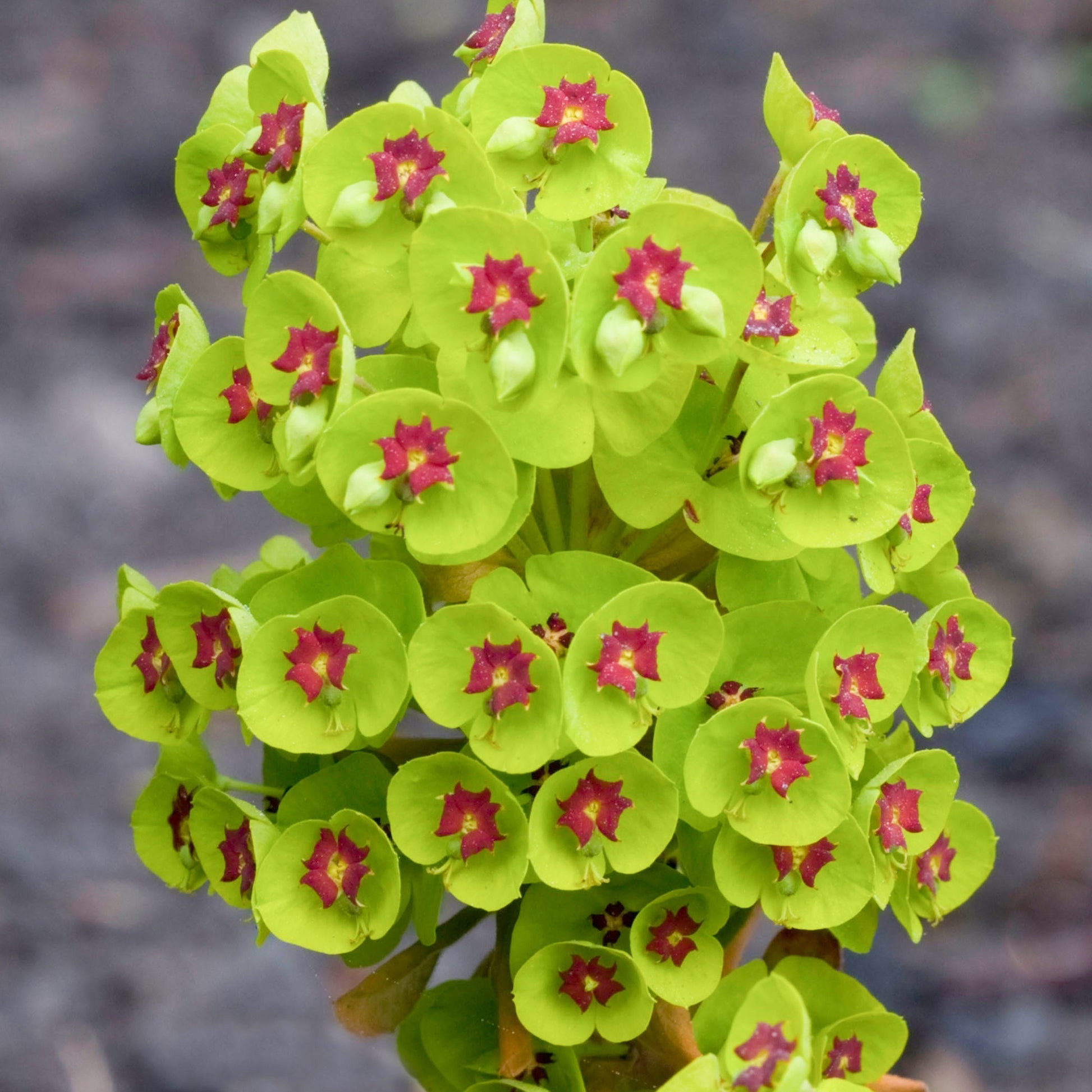 You should care for this Euphorbia by planting it in a spot where it can be exposed to sun, with some shelter also present. The soil should be light, well-drained and kept watered whenever the soil beneath is dry to touch. You can also cut any spent flower shoots back to ground level in late Summer or Autumn so the plant is ready to bloom once more in the following Spring.