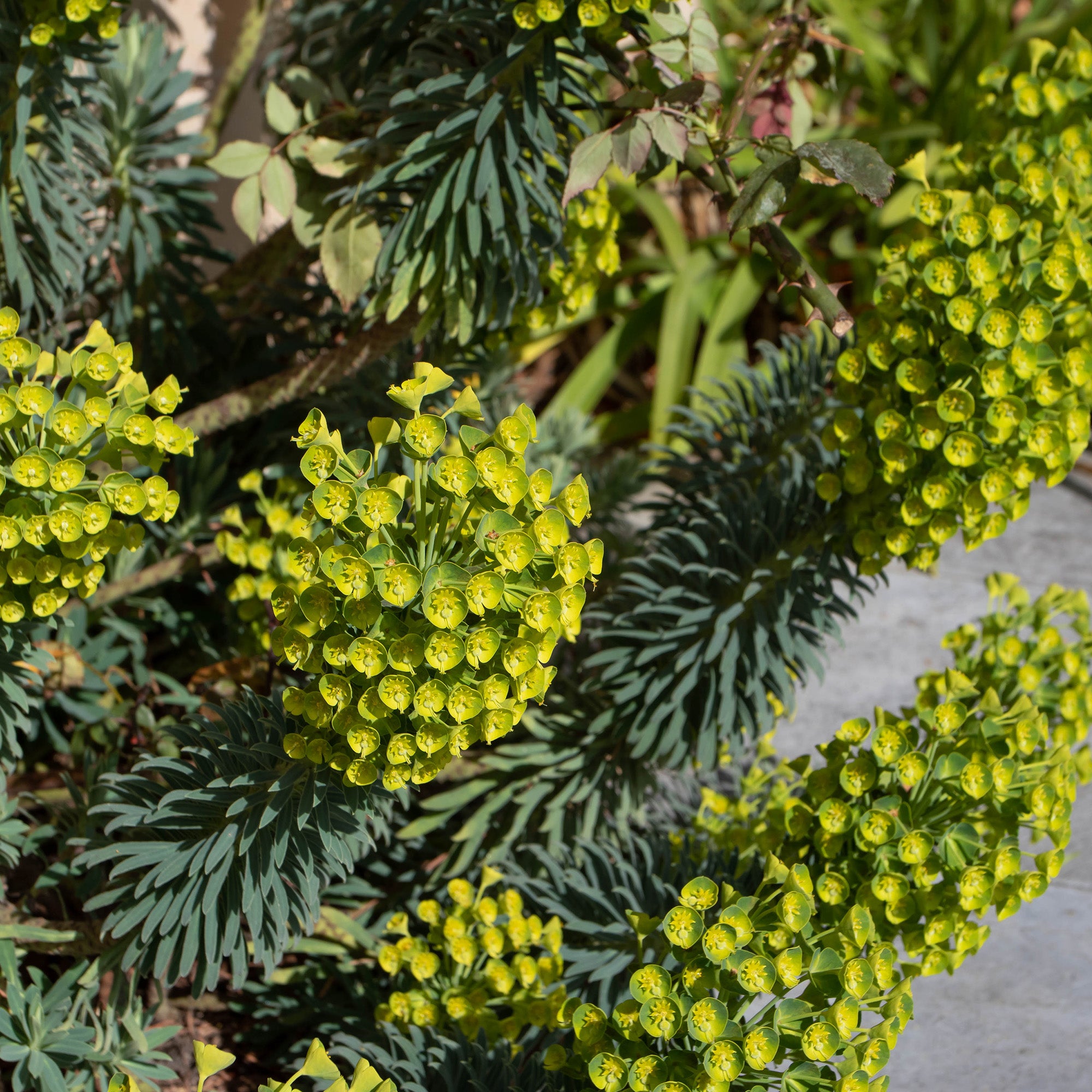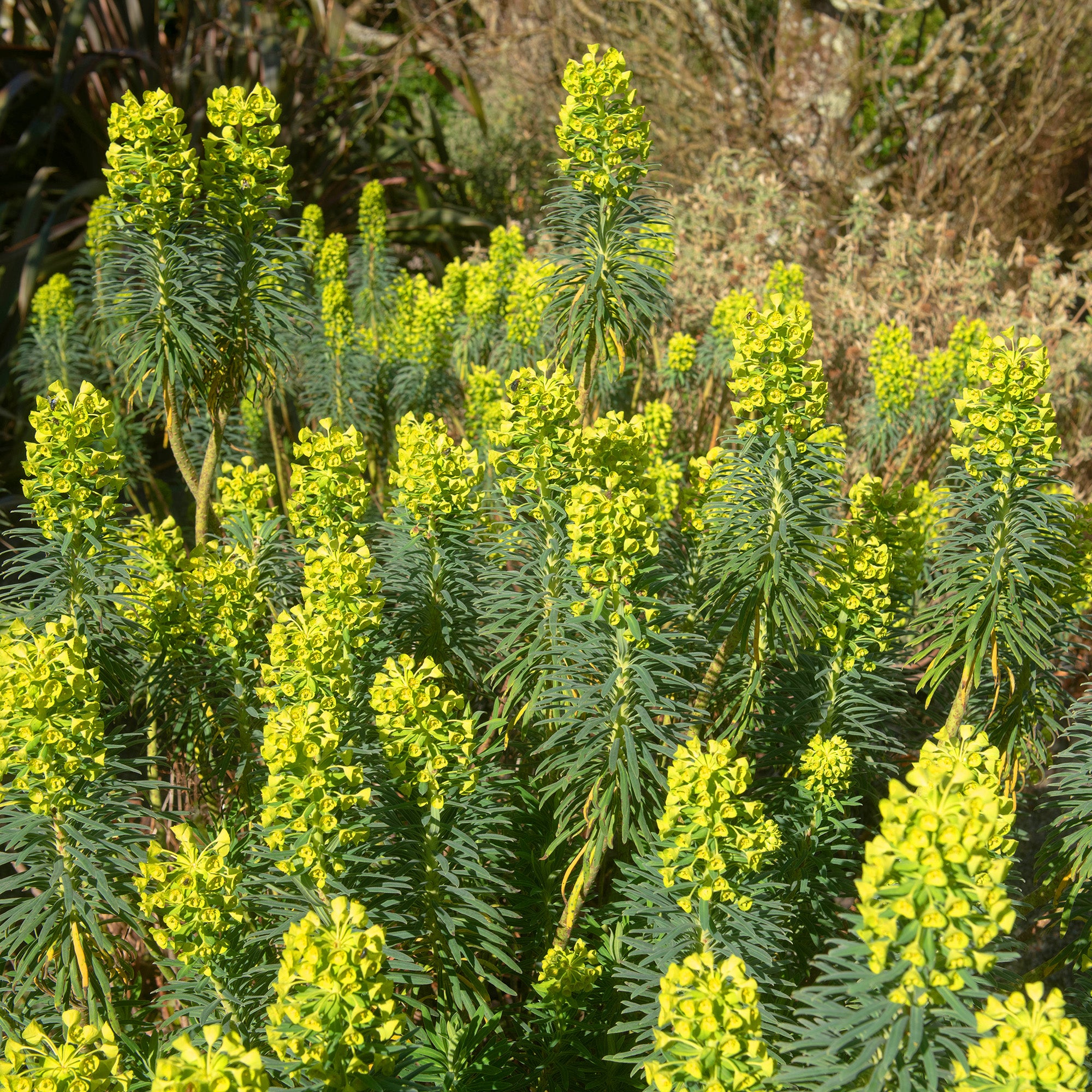 Ideal for mediterranean-style landscapes, it thrives in sunny, dry spots with good drainage. It requires little maintenance but should be handled with care. If this is done in the right way, gardeners of all levels will have a great time growing this beautiful Euphorbia variety.