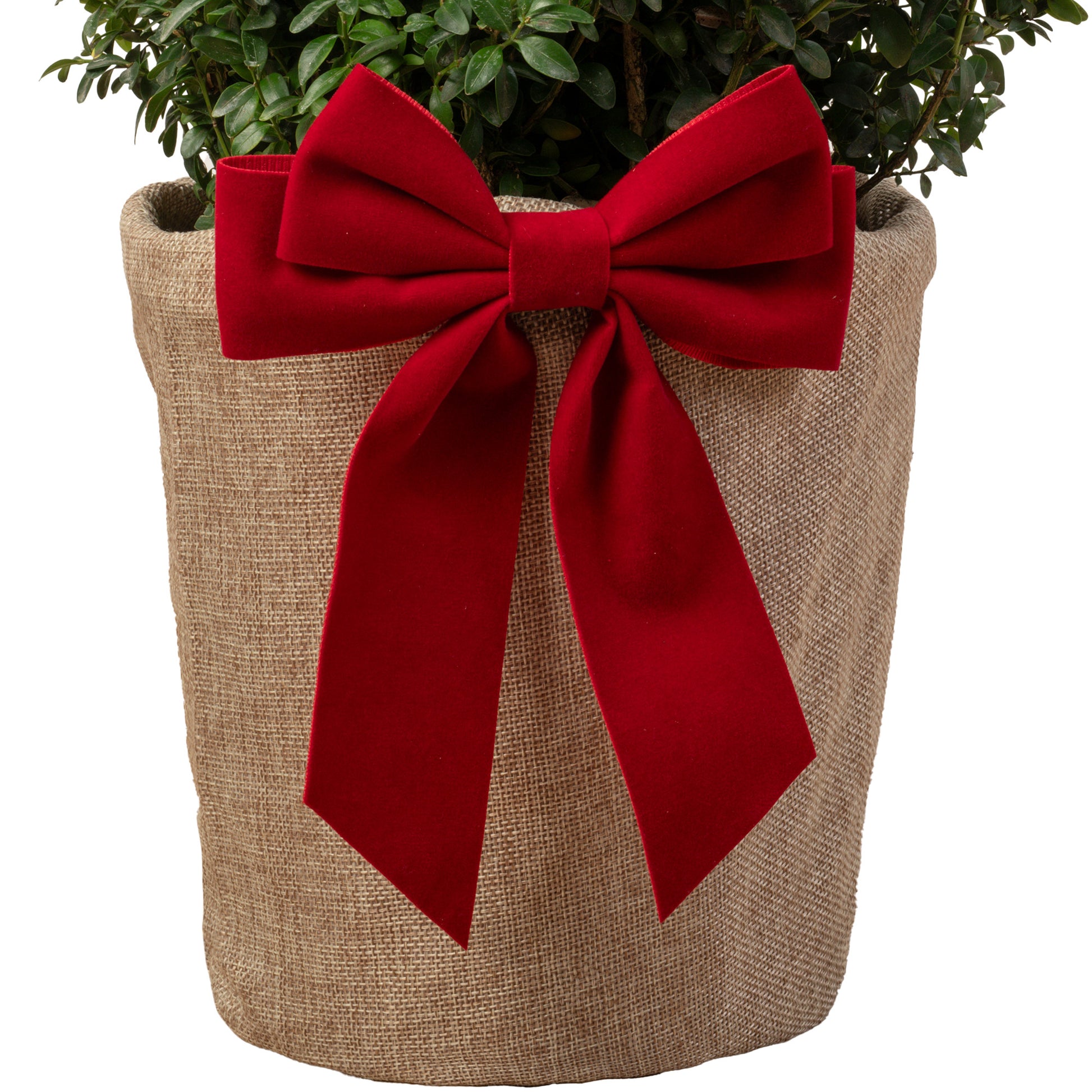 This Box Spiral Topiary Tree is a classic Buxus Bush boasting an elegant, spiral shape, complete in a rustic gift bag with a classic red Christmas bow. A perfect gift for garden lovers to bring year-round interest, allowing them to enjoy it long after the festive season has passed. These shrubs will happily reside in a pot to complement patios, balconies, driveways and entrances. If potted, they must be watered regularly during dry spells and rotated every so often to ensure sure each part gets even sunlight.