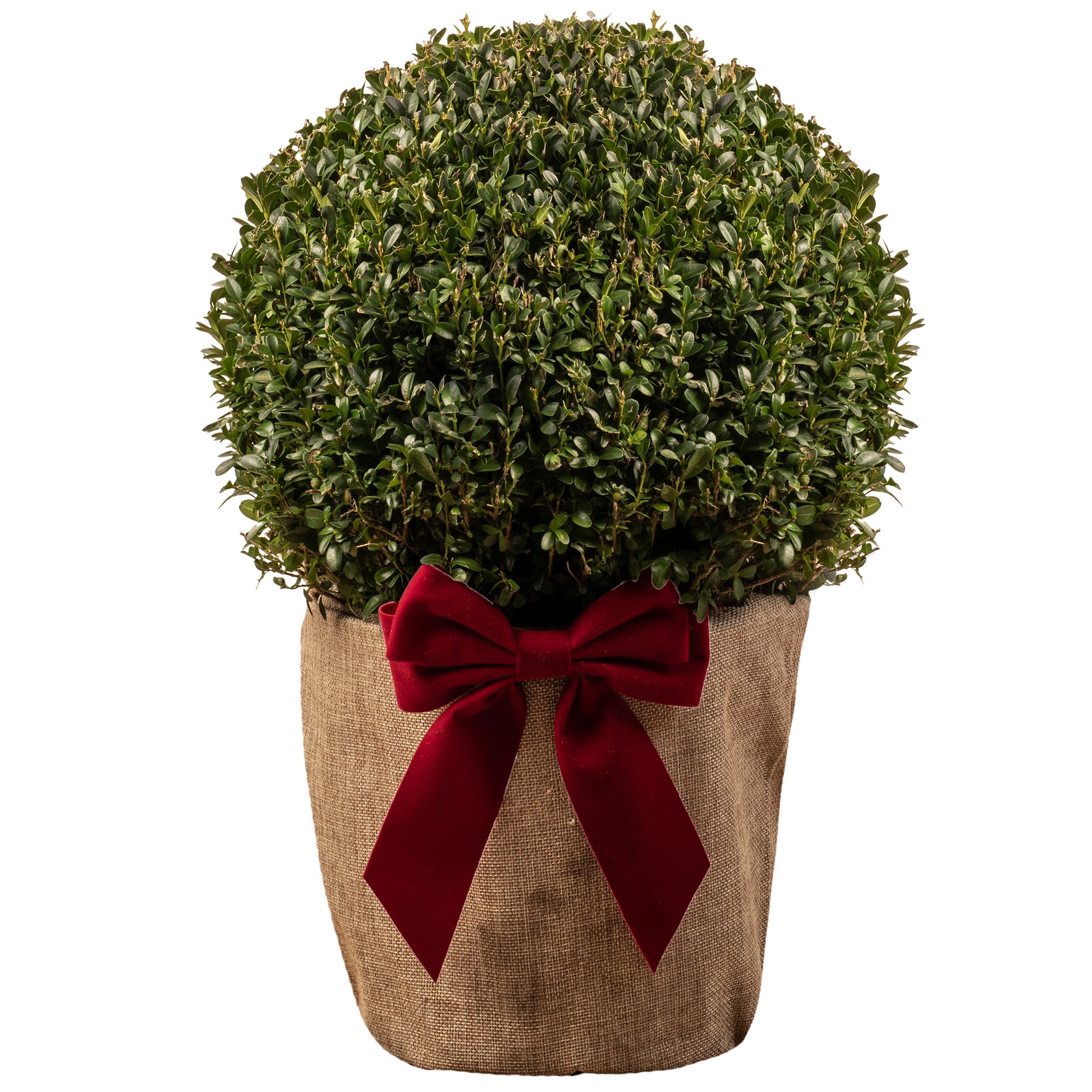 Festive Wrapped Buxus Topiary Ball Outdoor Plant Gift