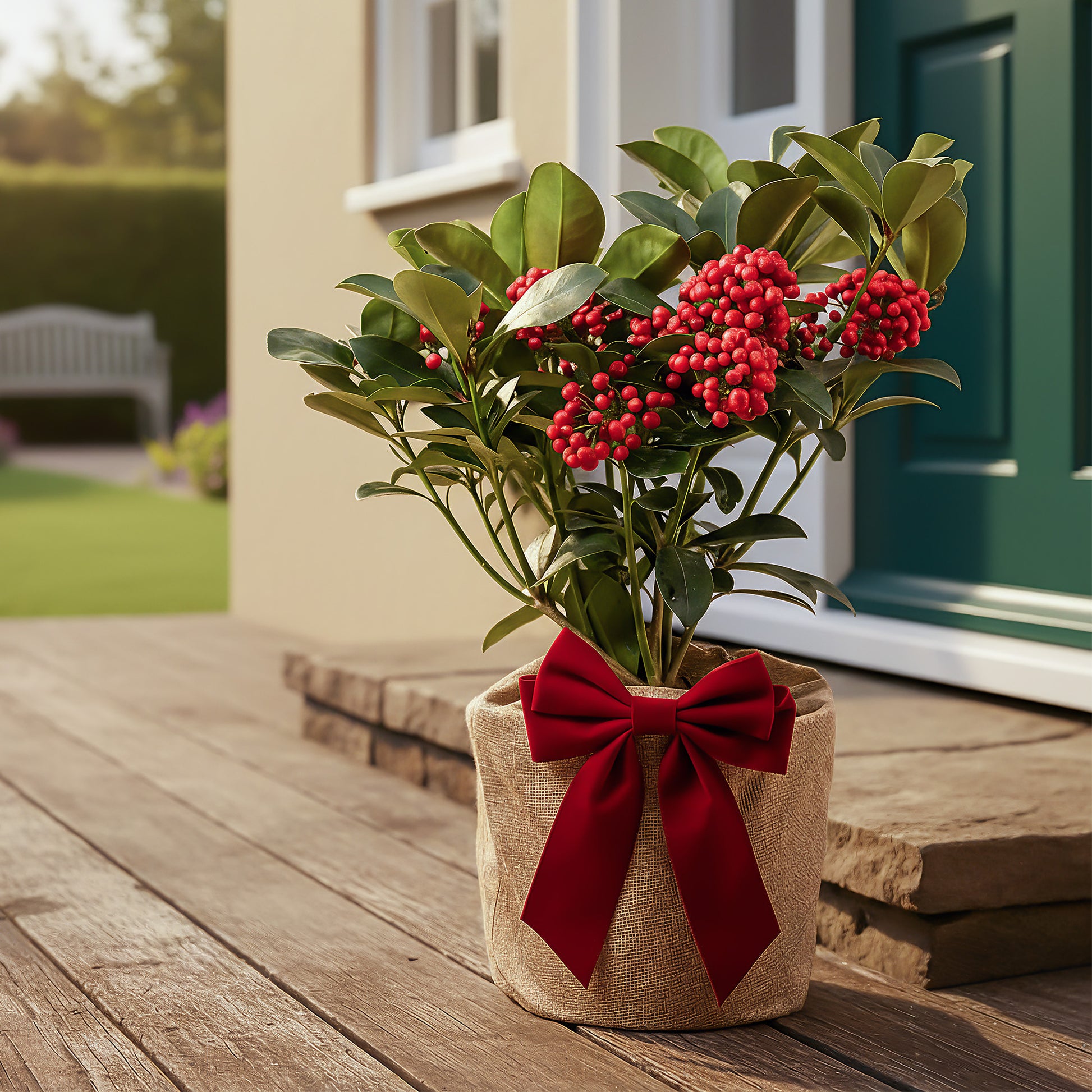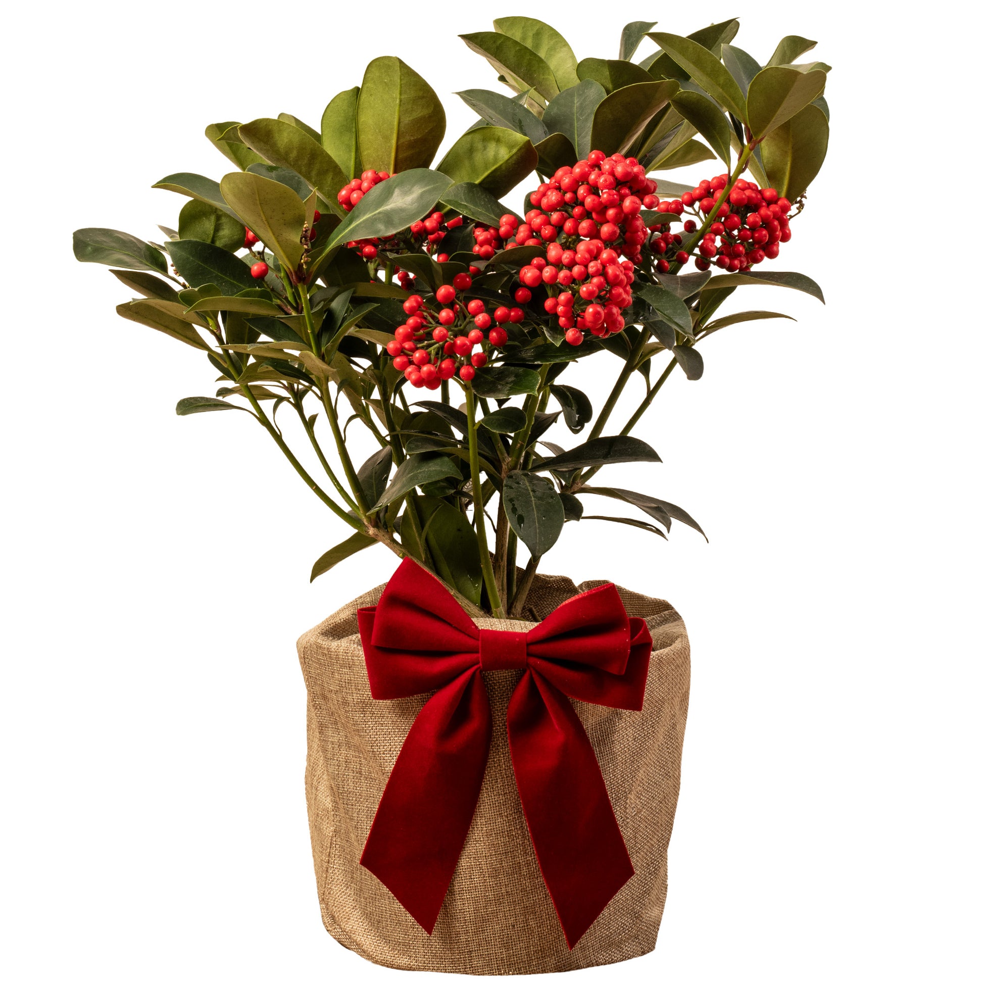 Festive Wrapped Skimmia Redruth Outdoor Plant Gift