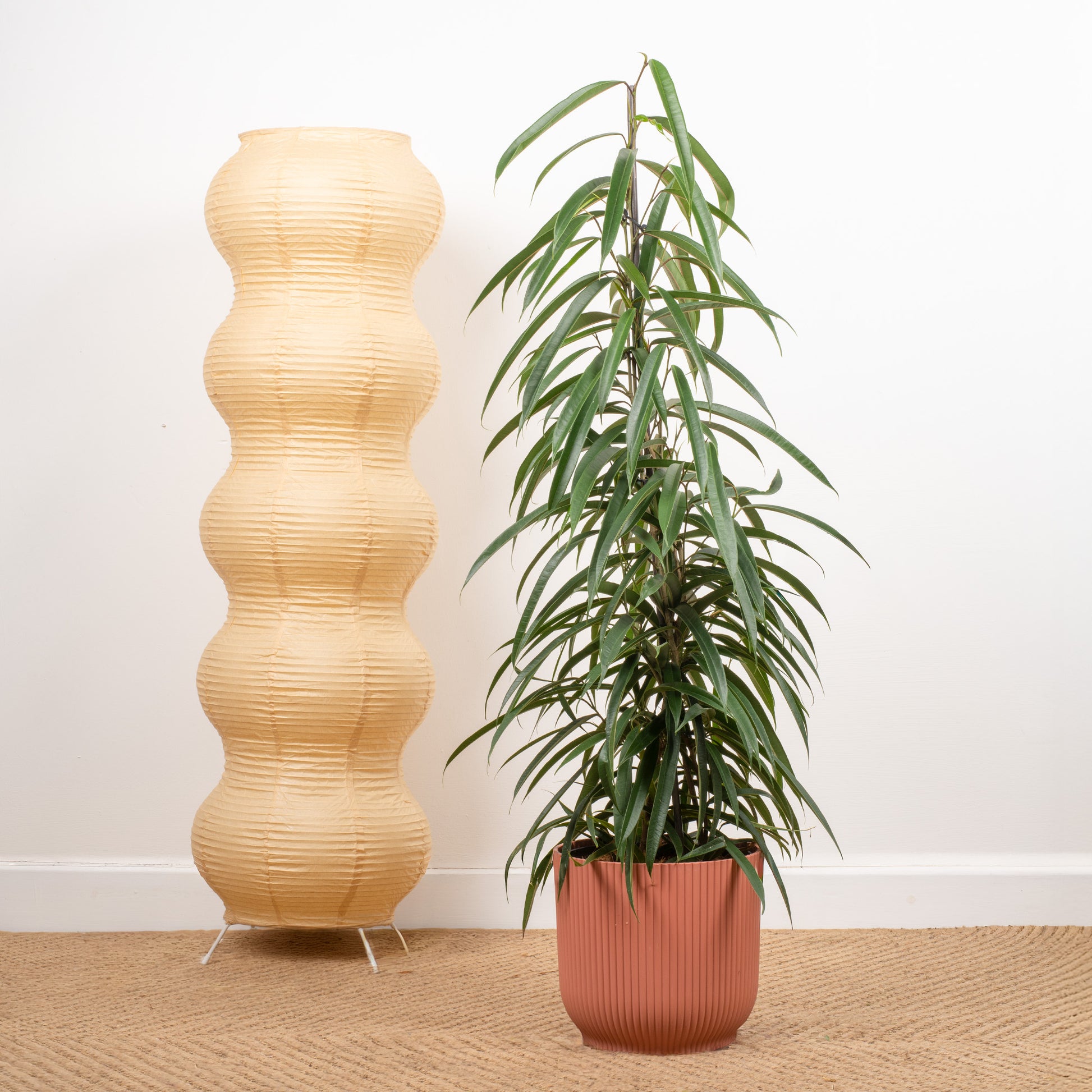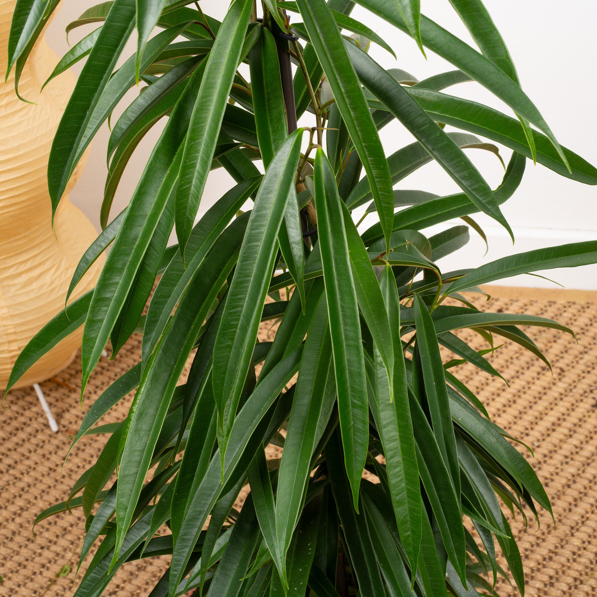 Ficus Alii, also known as the Banana Leaf Fig, is a stylish and adaptable indoor tree prized for its long, slender leaves and elegant growth habit. Unlike its more temperamental relatives, this variety is low-maintenance and thrives in bright, indirect light, making it an excellent choice for homes and offices. Its glossy, deep green foliage adds a refined tropical touch, creating a calming and sophisticated atmosphere.