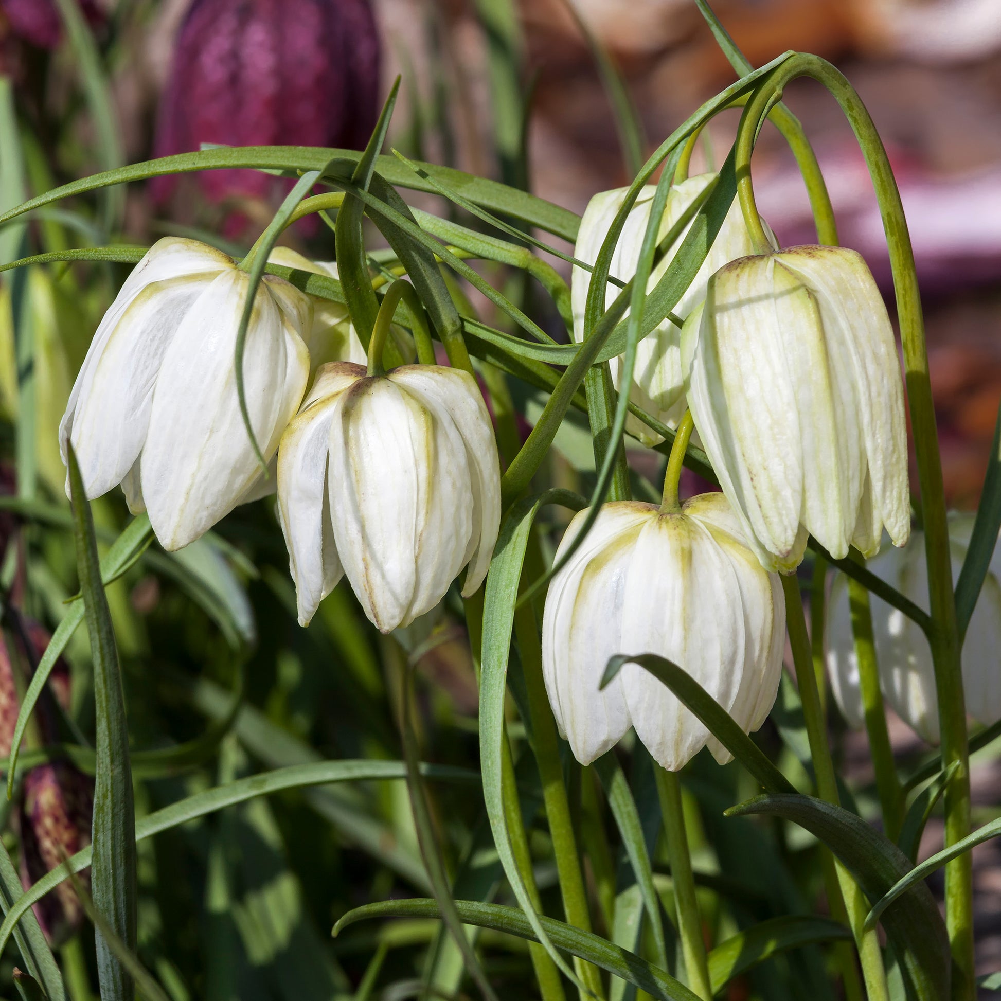 Plant fritillaria bulbs in mid to late autumn in full sun or partial shade with moist but well-draining soil. Use a bulb planter or trowel to dig holes around 10cm apart and place one bulb around 30cm deep in each hole. Ensure the pointed end faces upwards then backfill the hole with soil, firm down, and water in well.