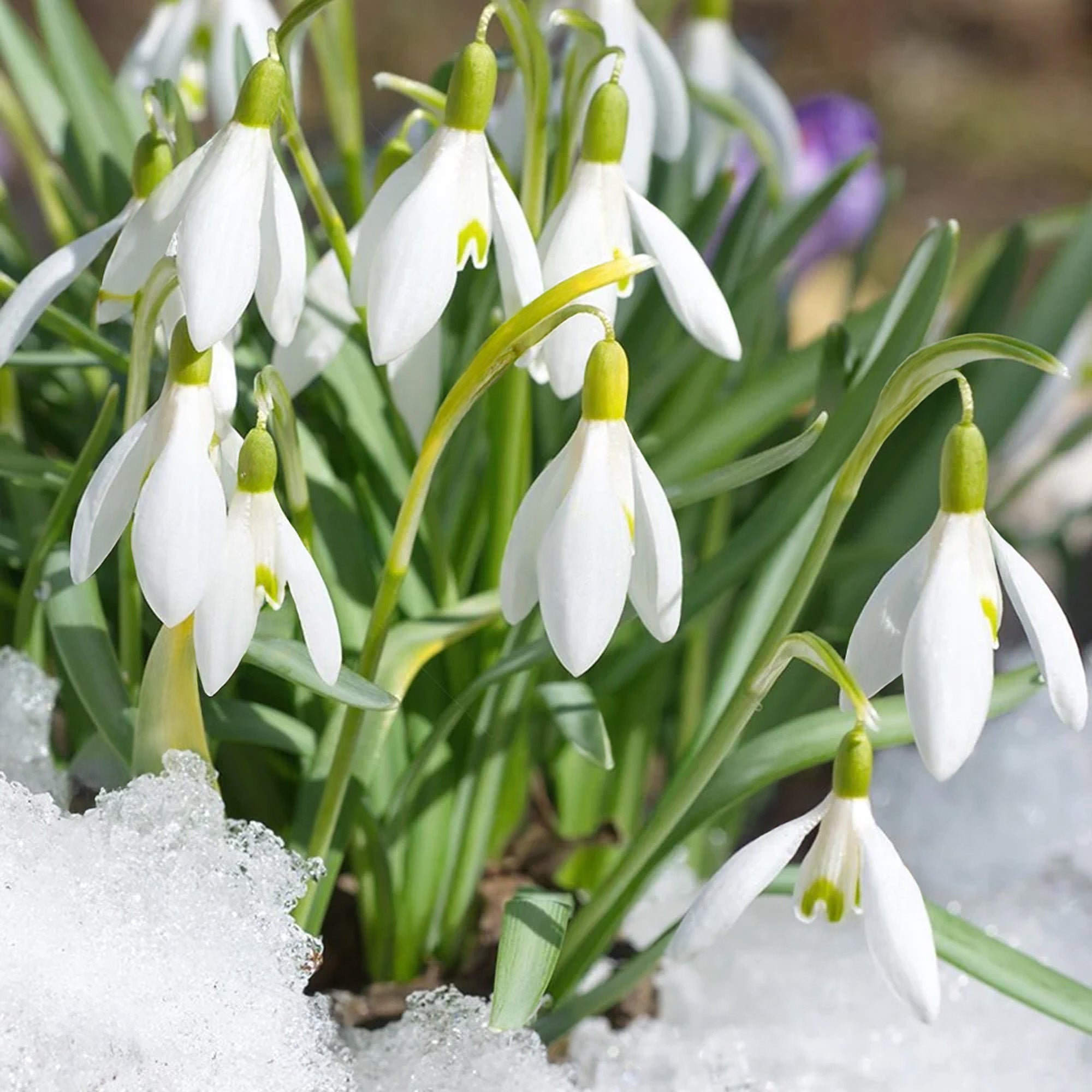 Plant Galanthus in full sun to partial shade in moist-well-drained soils. For further propagation, divide the plants shortly after flowering by digging out and separating the plants, allowing the leaves to fade on their own. Galanthus is typically planted at depths of 5-8cm and after being established will continue to thrive and grow for years to come.