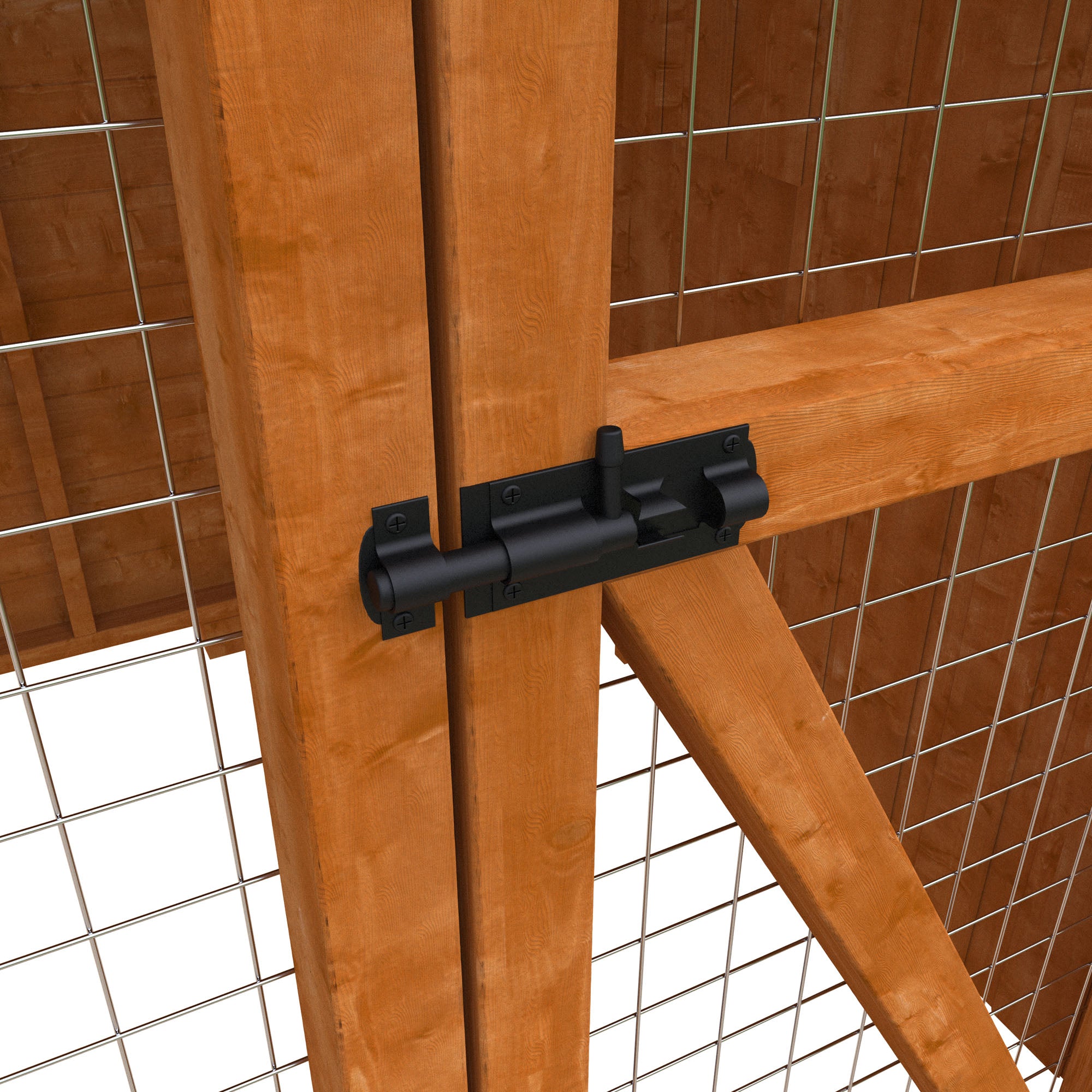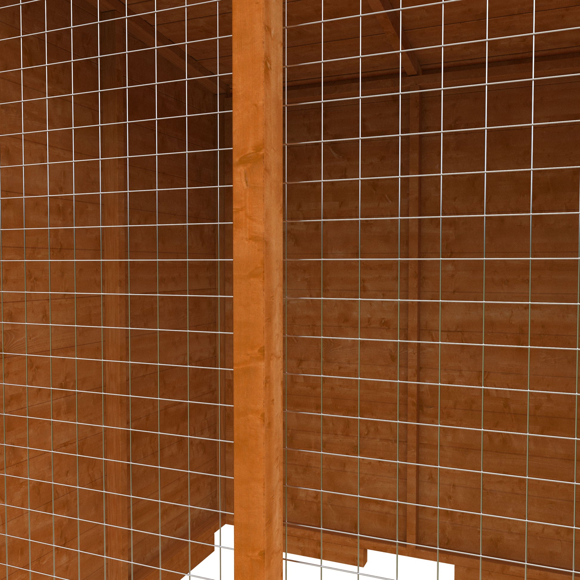 The design includes a massive run area, perfect for larger pets to move and exercise freely. An internal hatch adds versatility to the structure, allowing pets to be confined to either the house or run area as needed. The dog house & run features a timber access door and a 50x50 galvanized mesh door to the run, combining accessibility with security. The roof is covered with heavy-duty black mineral felt, providing extra protection against weather conditions.