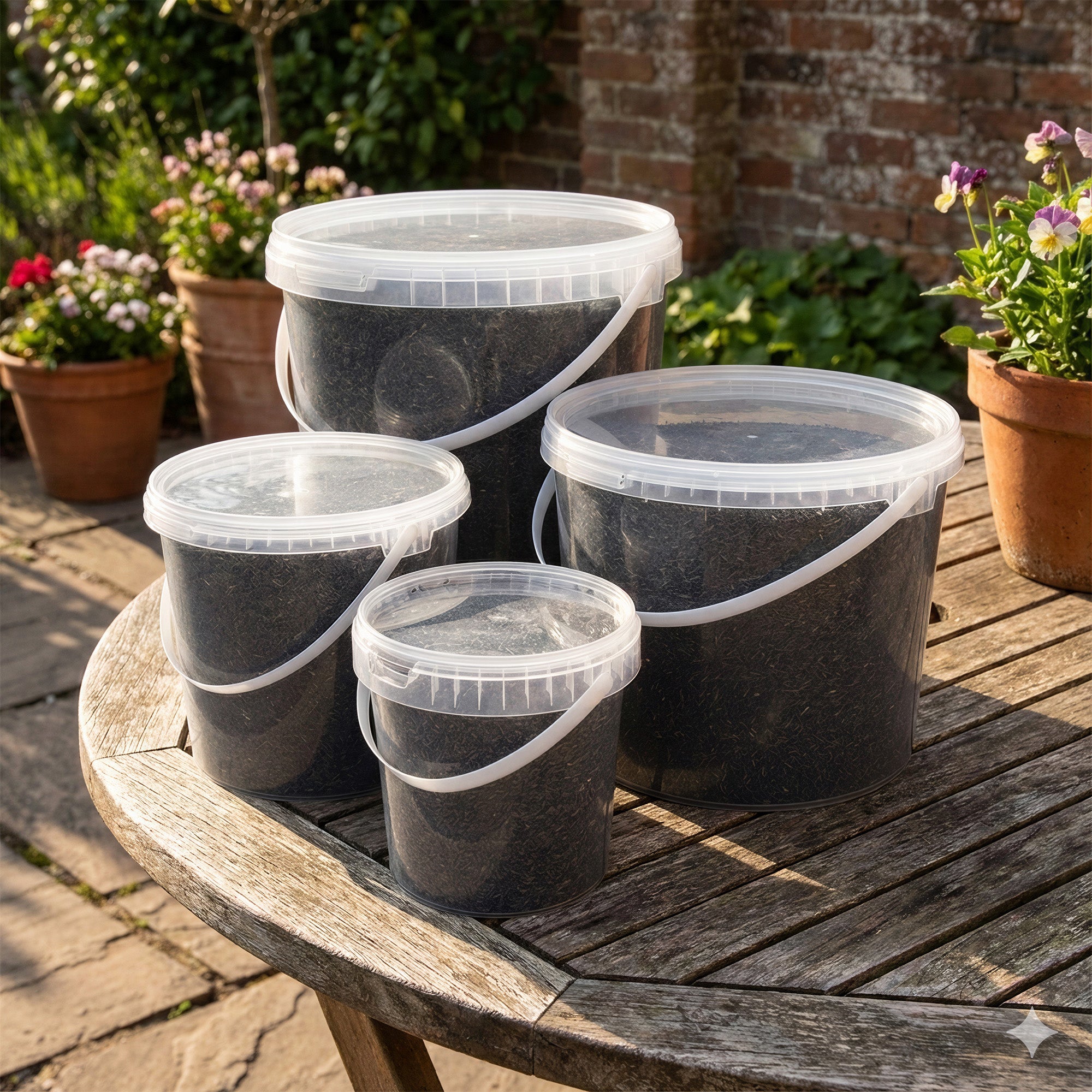Supplied in sealable and reusable clear plastic tubs.