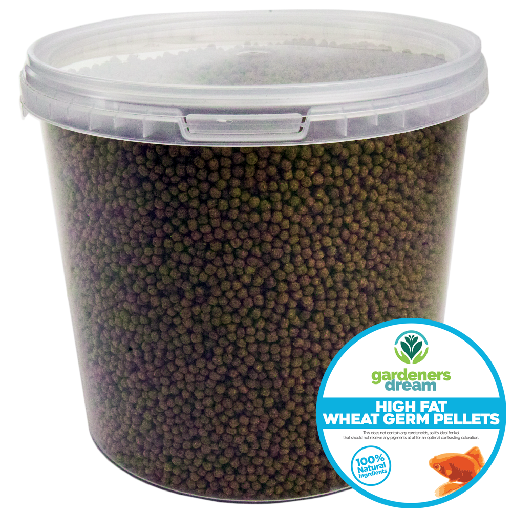 Gardeners Dream 3mm Wheatgerm feed is a highly nutritious feed suitable for not just koi, but all pond based cold water fish. As the name suggests, this feed has a high wheatgerm content which will keep your fish in prime condition throughout the year. High in Vitamin E, these pellets also contain essential fatty acids and minerals to aid digestion and maintain a healthy immune system, helping your fish to keep healthy and fight disease. This balanced feed can be used 2-4 times per day, depending on the size of the fish and the temperature of the water, so please gauge the amount of neccesary food accordingly. This feed is comprised of all natural and responsibly sourced ingredients, they are easy to digest, produce far less waste and keep the water in your pond or tank clearer for longer.