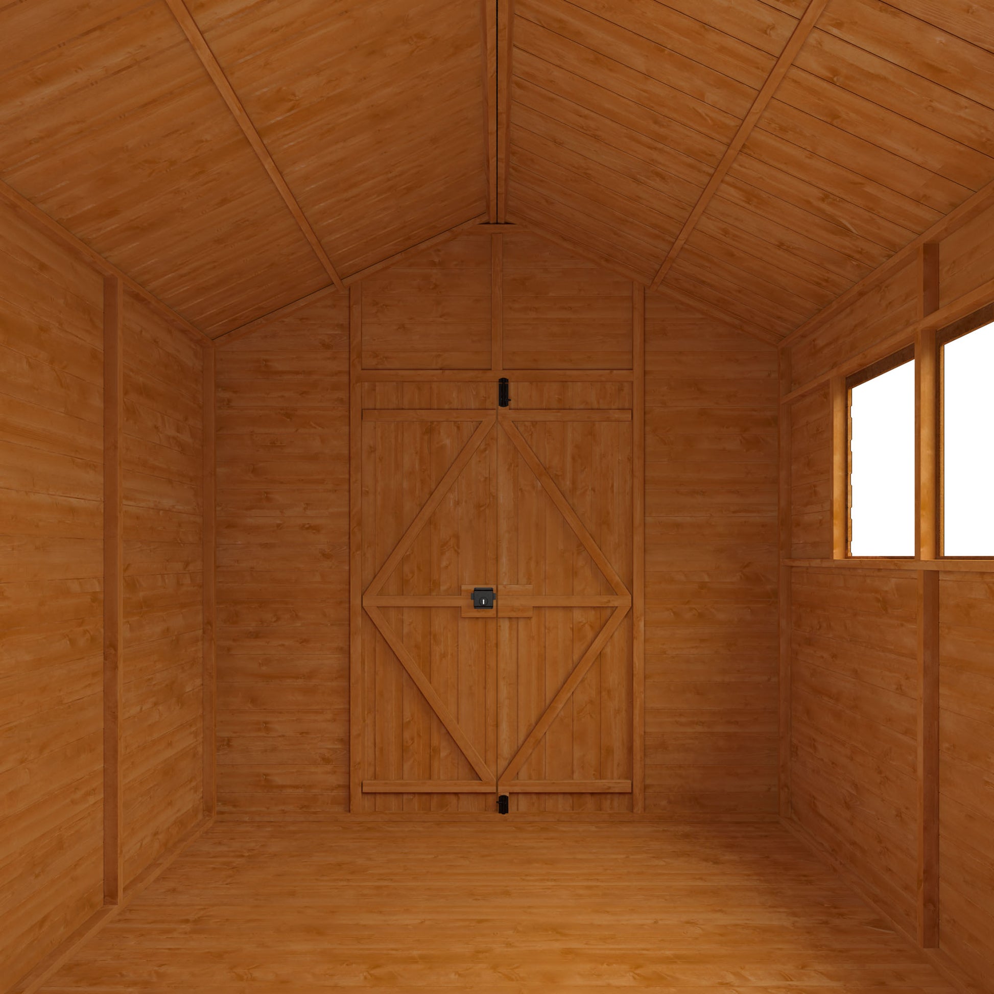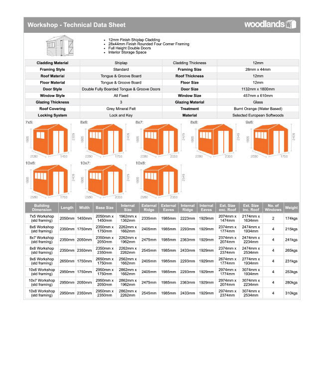 The structure is made robust with 12mm Shiplap T&G Cladding for the walls, and a matching 12mm Tongue & Groove for the roof and floor. The roof is further protected with heavy-duty mineral felt, safeguarding the workshop from various weather conditions. The solid construction is supported by 28x44mm Rounded Four Corner Framing, ensuring the workshop's durability and longevity. This workshop also comes with a 10-Year Manufacturer's Guarantee, a testament to its quality and reliability.