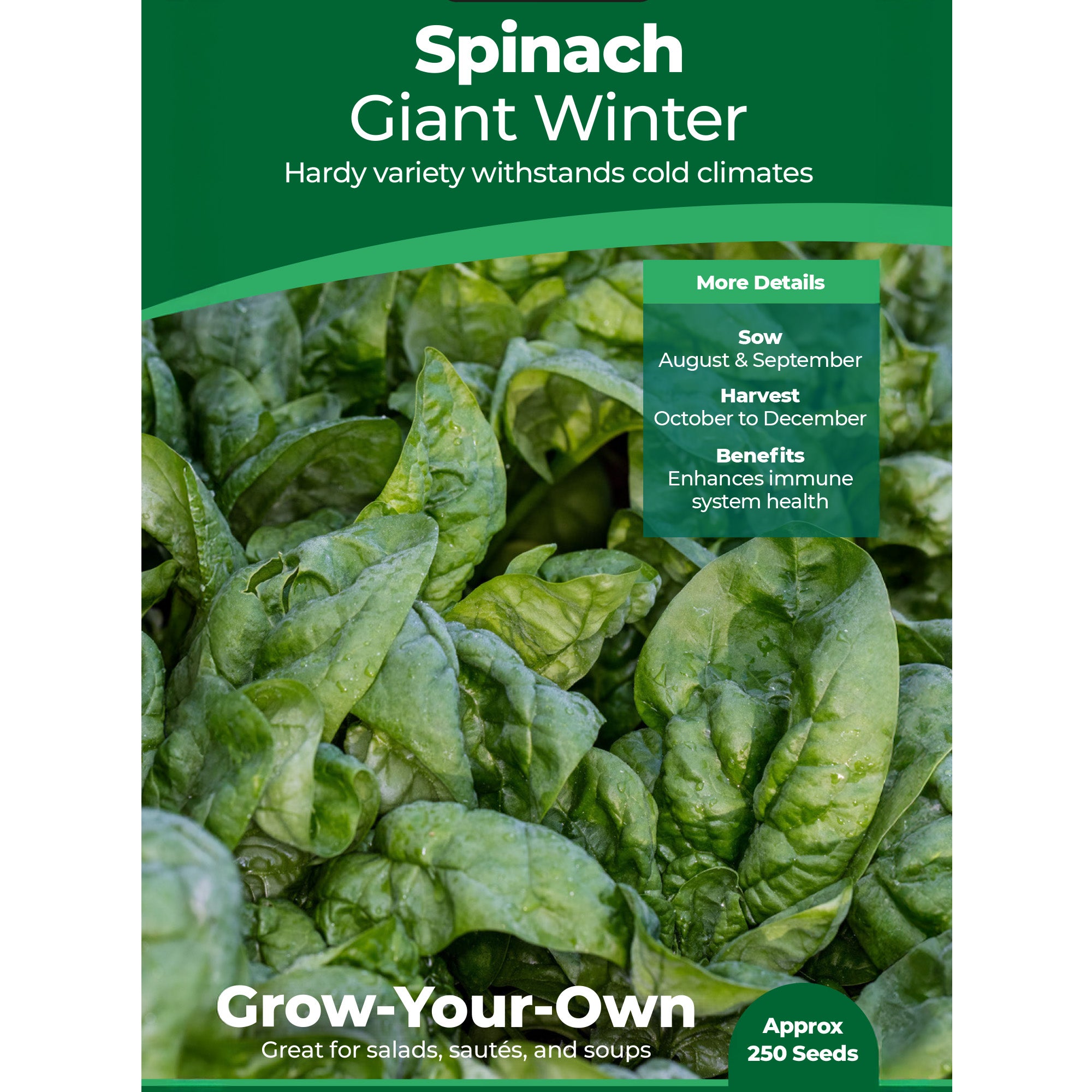 Giant Winter is a hardy Spinach that, as the name would suggest, provides an abundance of large, leafy vegetables during the coldest months of the year.