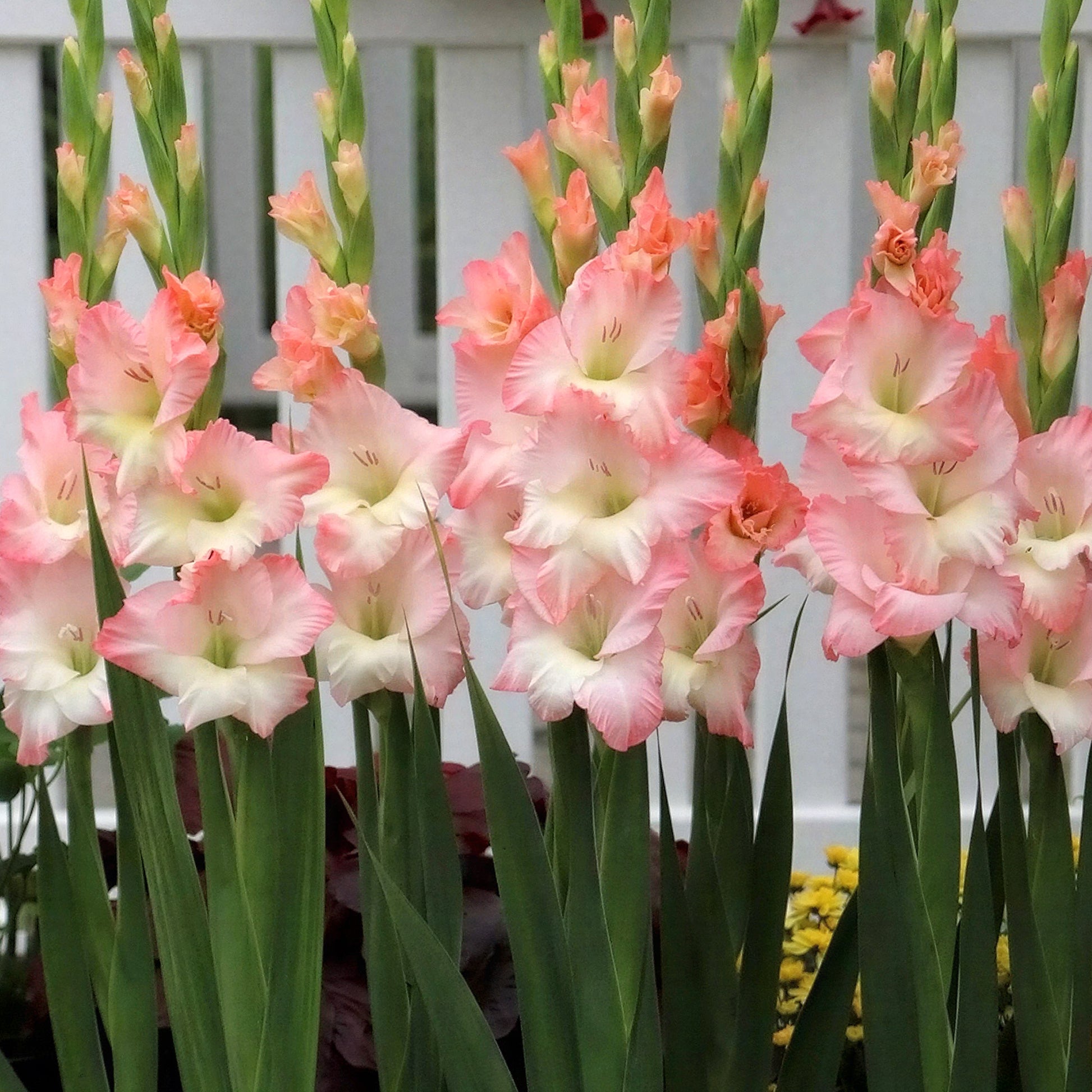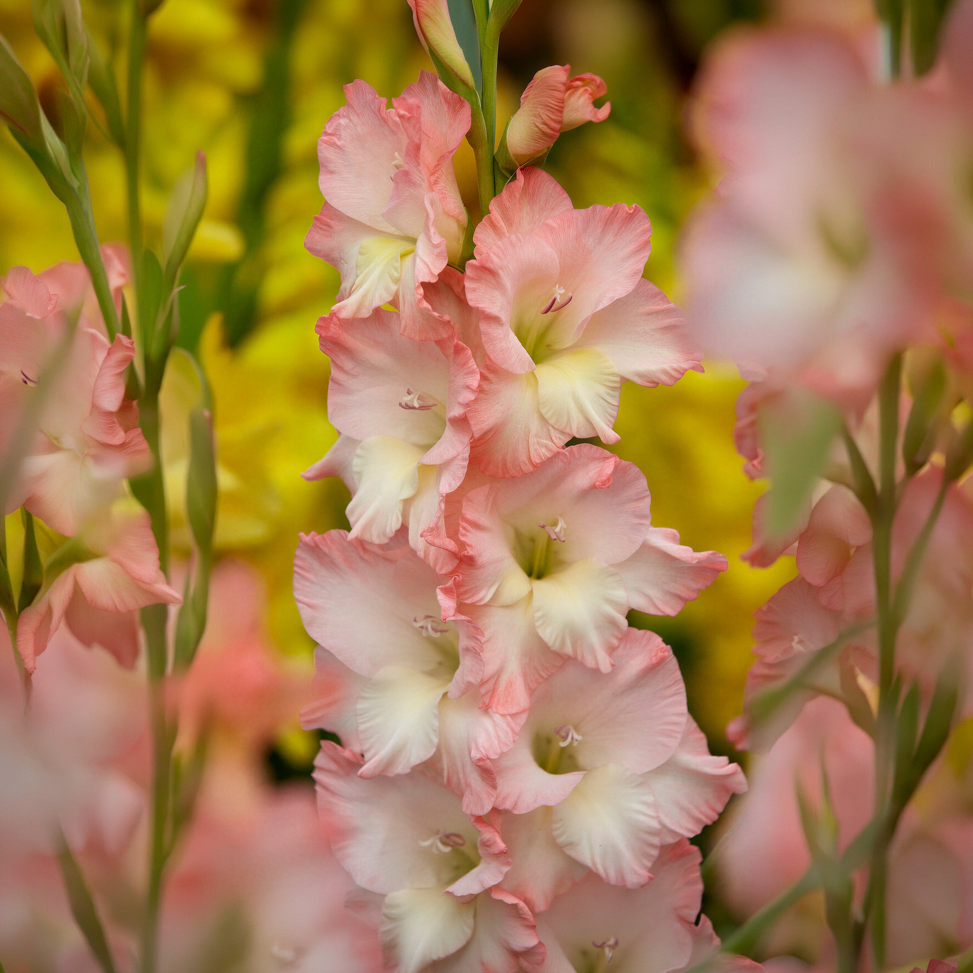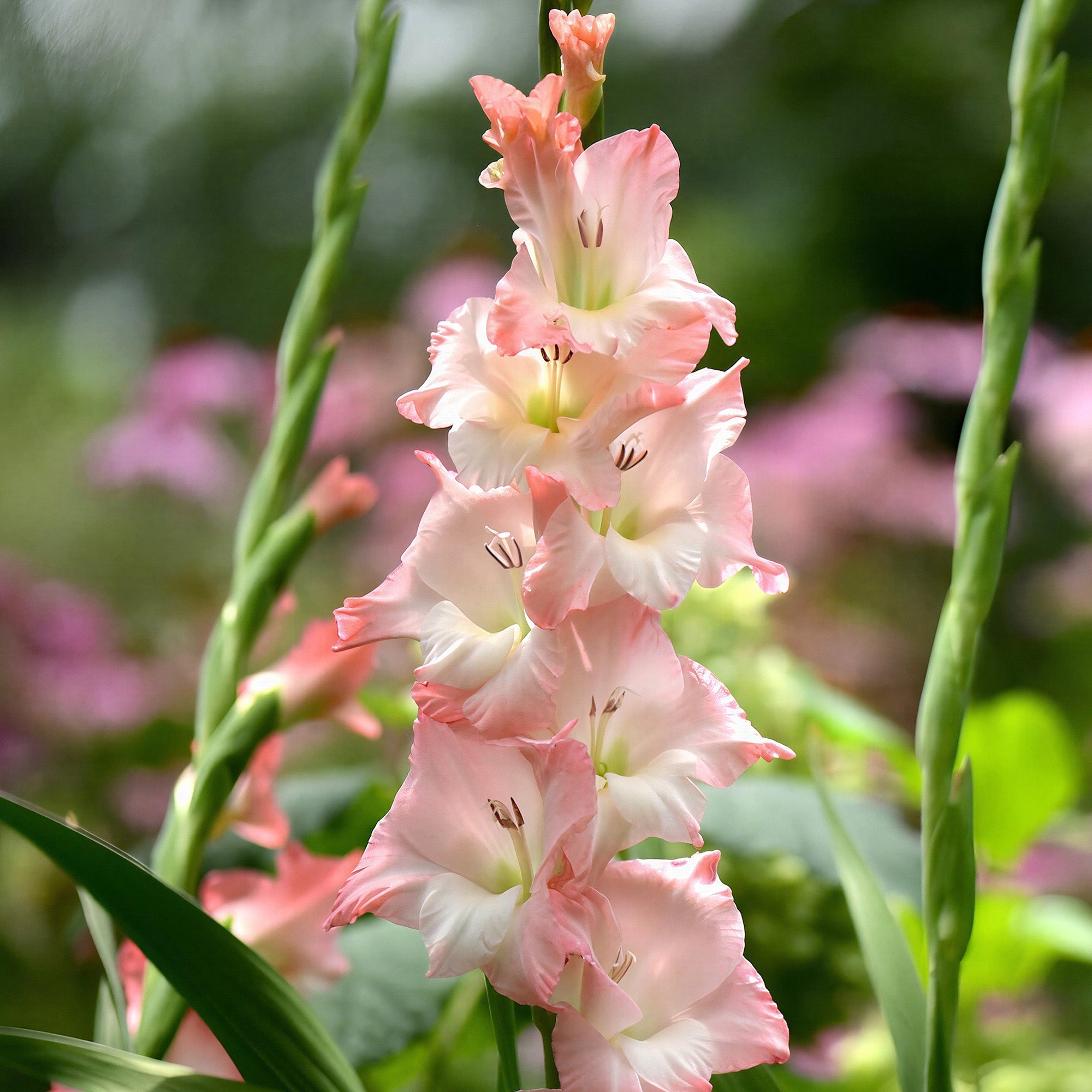 Caring for Gladioli Careless is pleasantly straightforward. Plant the corms in well drained soil in a sunny, sheltered spot, spacing them in small groups so the stems can rise tall and steady. Water regularly during dry spells and give a light feed as the flower spikes begin to form to support strong, healthy growth. As the season progresses, the Sword Lily rewards you with weeks of soft, romantic blooms that are as lovely in the garden as they are in a vase. With just a little attention, these elegant flowers return each year to bring height, colour, and gentle movement to your summer displays.