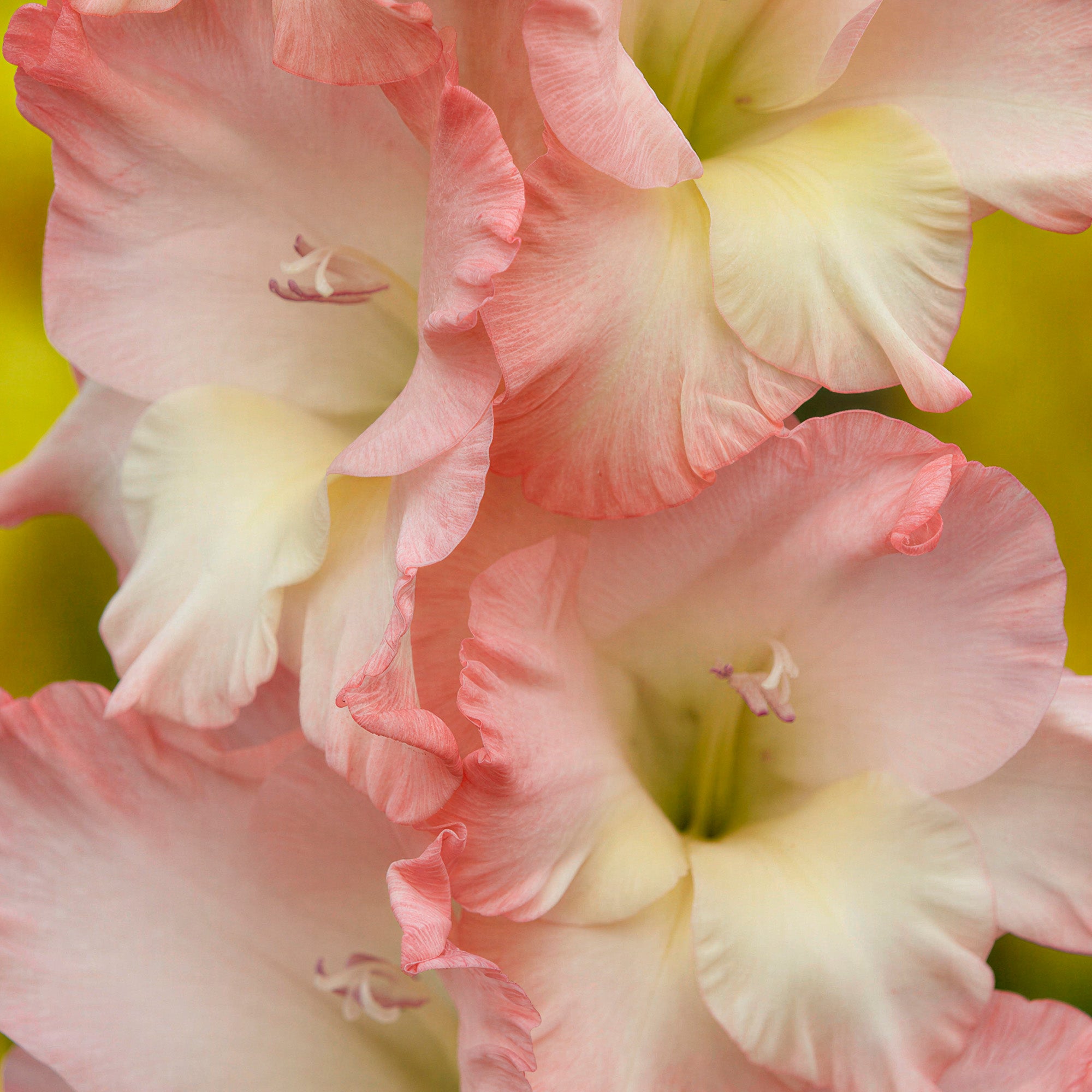 Gladioli Careless, often known as the Sword Lily, brings a graceful, romantic presence to the garden with its tall spires of creamy white and blush pink blooms. The softly ruffled petals catch the light beautifully, giving borders and beds a gentle, fluttering movement through the summer months. Whether grown for garden display or for cutting, Careless adds a refined, airy quality that blends beautifully with both pastel and vibrant planting schemes.