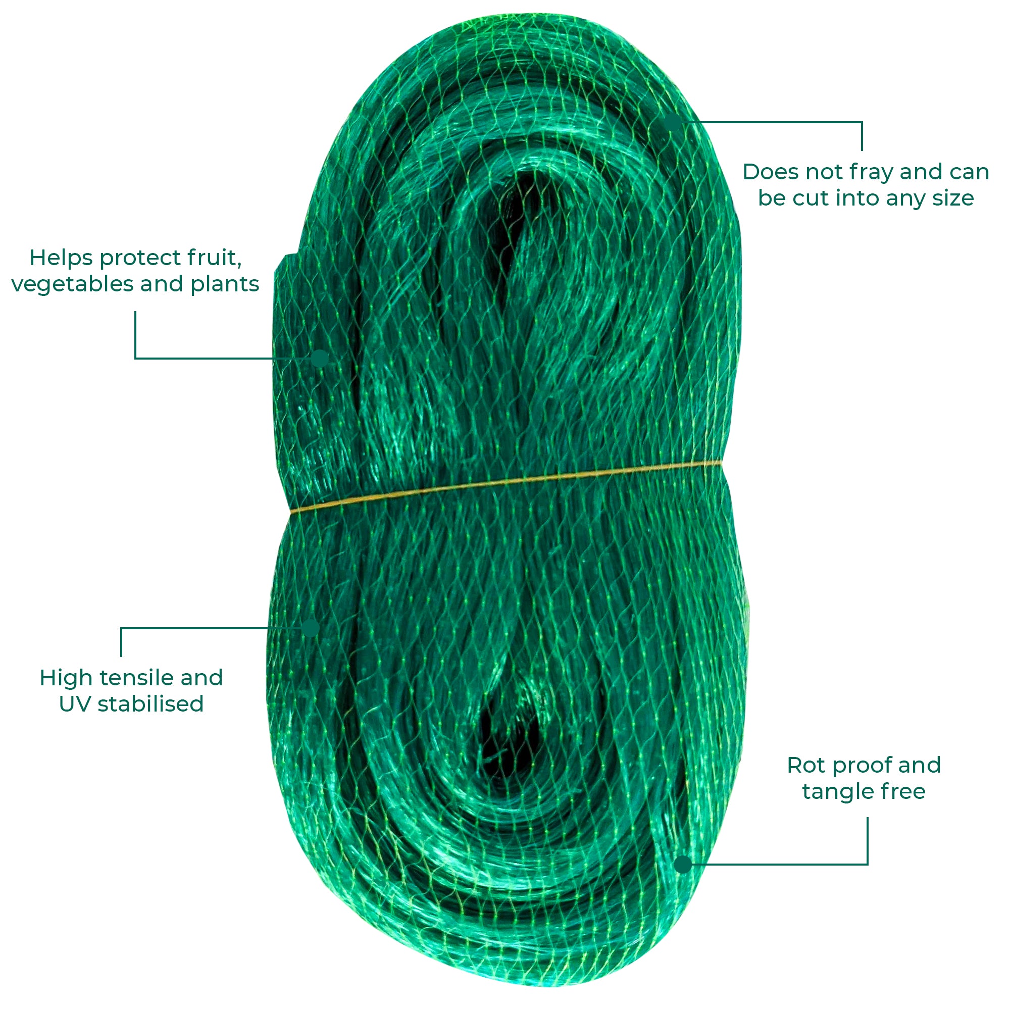Gardeners Dream Anti-Bird netting is ideal for protecting trees, plants or crops from birds, without stopping rain/water from reaching the soil. The netting is also suitable for covering ponds, to protect fish from birds and to minimise debris.