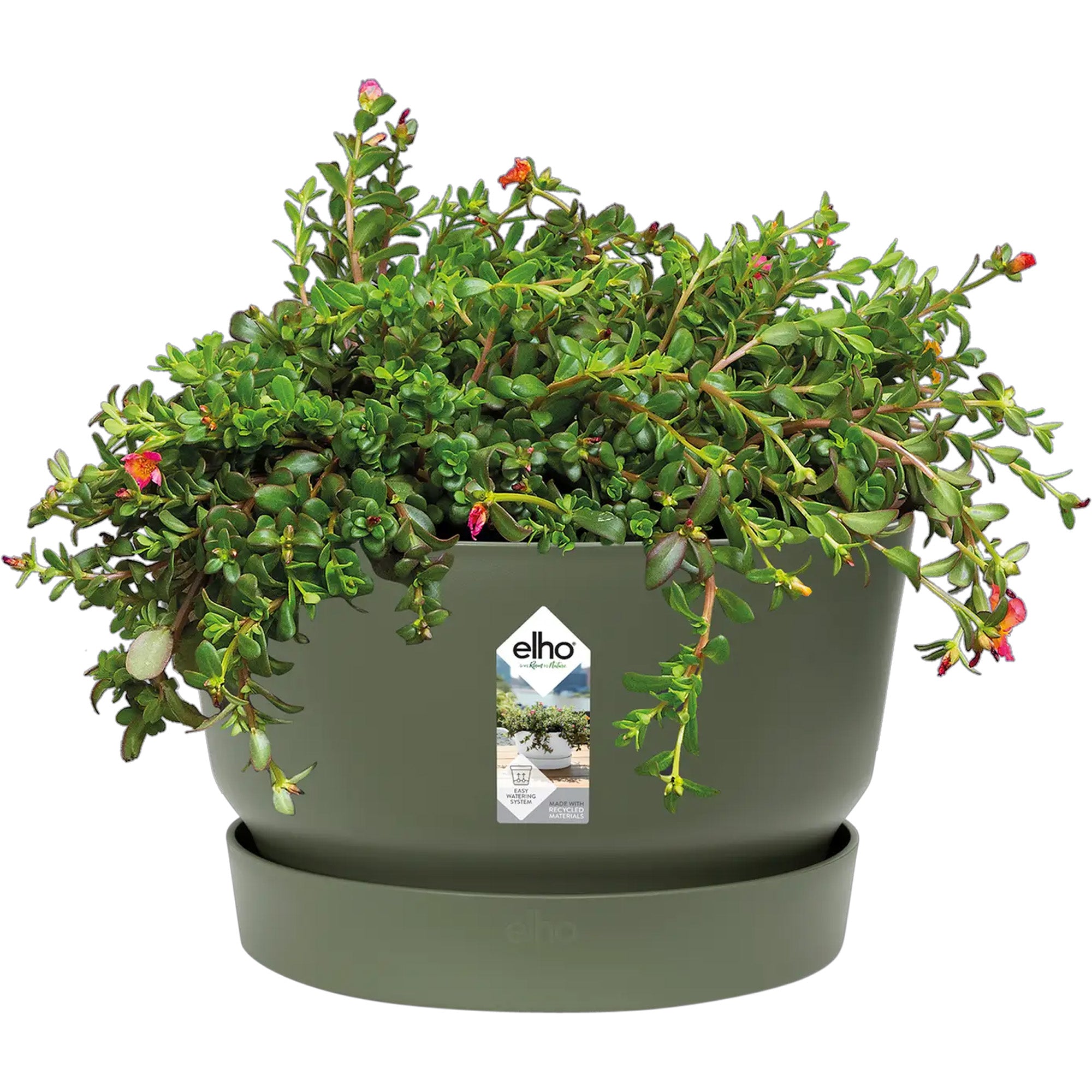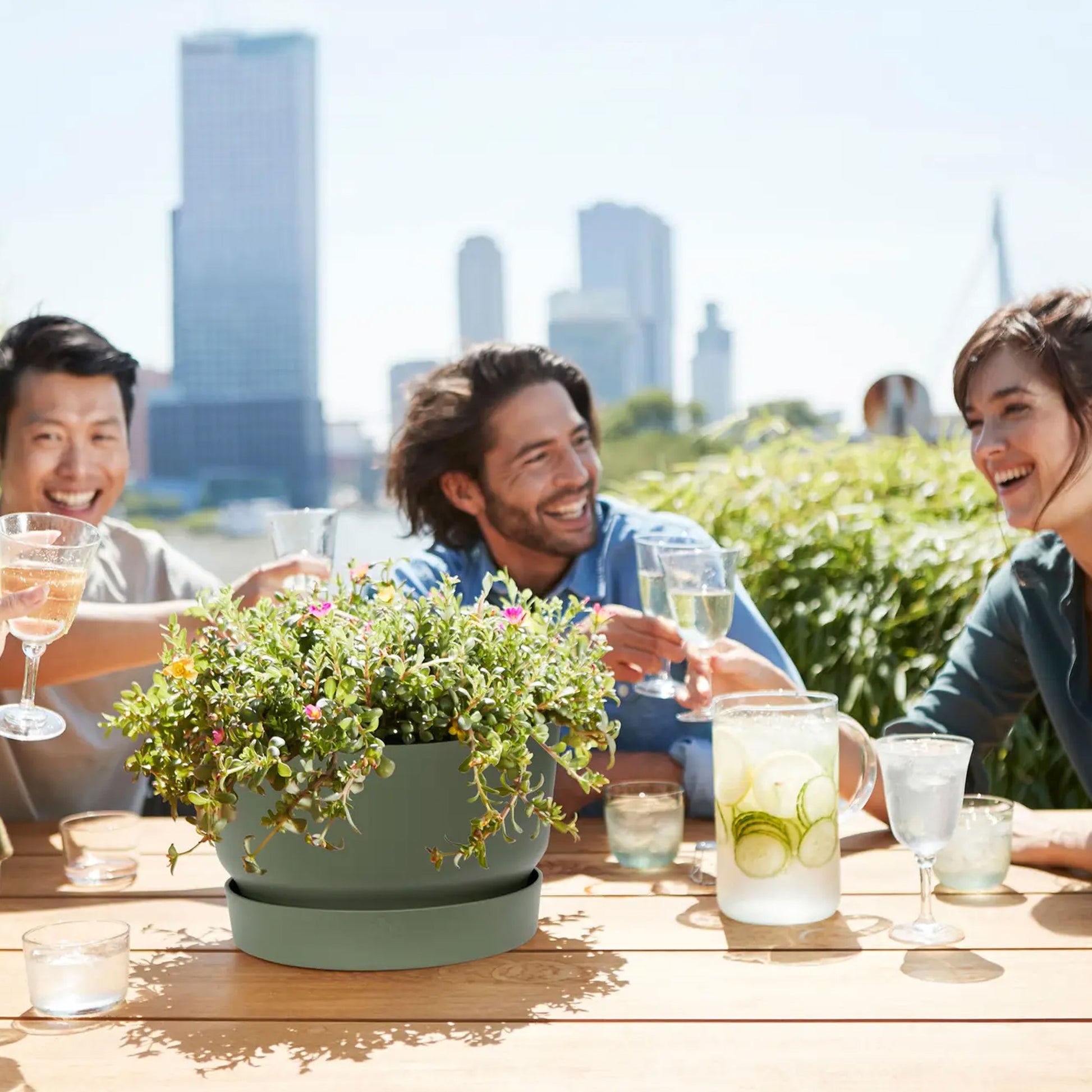 The Green Elho Greenville Bowl Pot is a great option for planting many varieties of outdoor plants in and around your garden. Coming in an array of sizes, you'll have plenty to choose from to fit your displays. The bowl-like shape of the pot is ideal for the most popular shrubs, perennials and herbs that gardeners grow. It will add colour and character to your outdoor space, as well as a simple, modern look to patios, pathways and more.