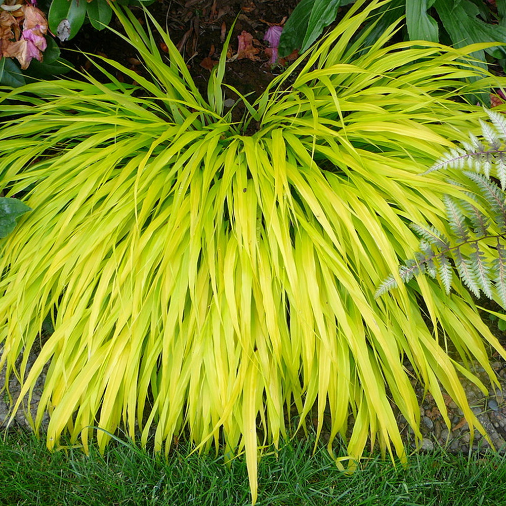 For vibrant foliage, plant Hakonechloa in dappled shade and ensure consistent moisture. Avoid heavy, waterlogged soils to prevent root rot.