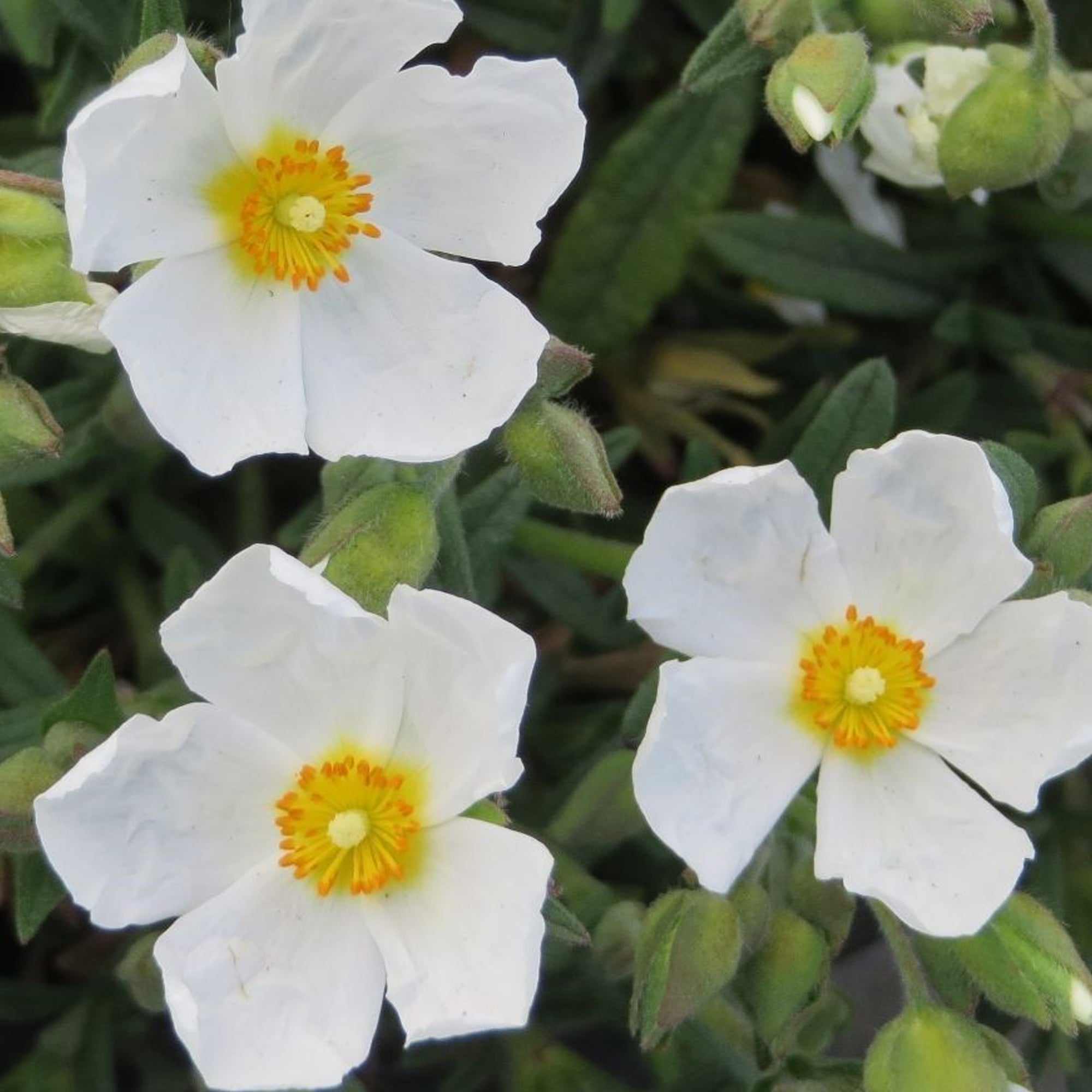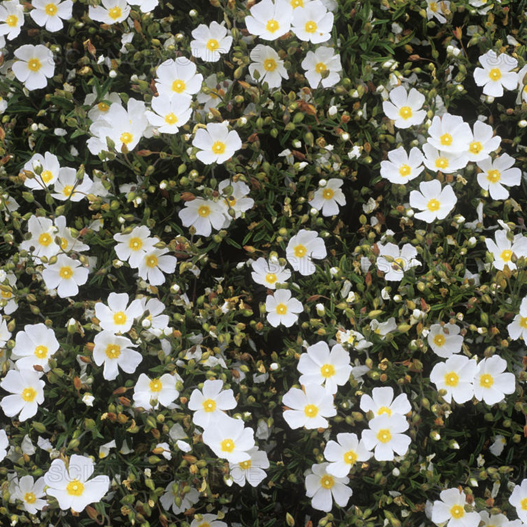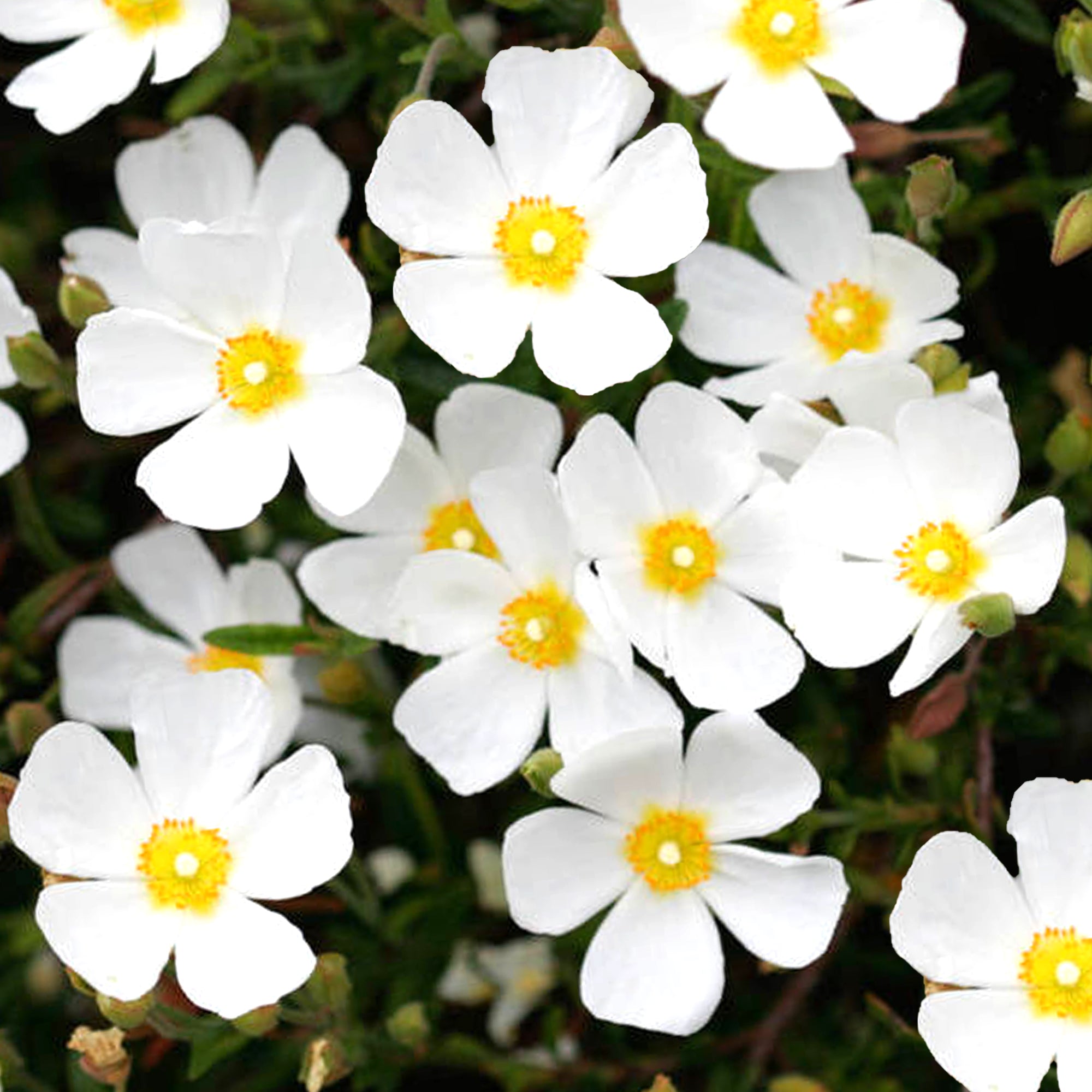 A low-growing, wide spreading evergreen shrub with narrow, dark green leaves and white, saucer-shaped flowers with yellow central stamen. The Halimiocistus sahucii, more easily referred to as Rock Rose is a great option for areas requiring some dense, mound-forming plants. The dark green foliage contrasts nicely with the pure white flowers which appear in Summer. A hardy dwarf shrub which is ideal for rockeries, groundcover or overhanging displays.