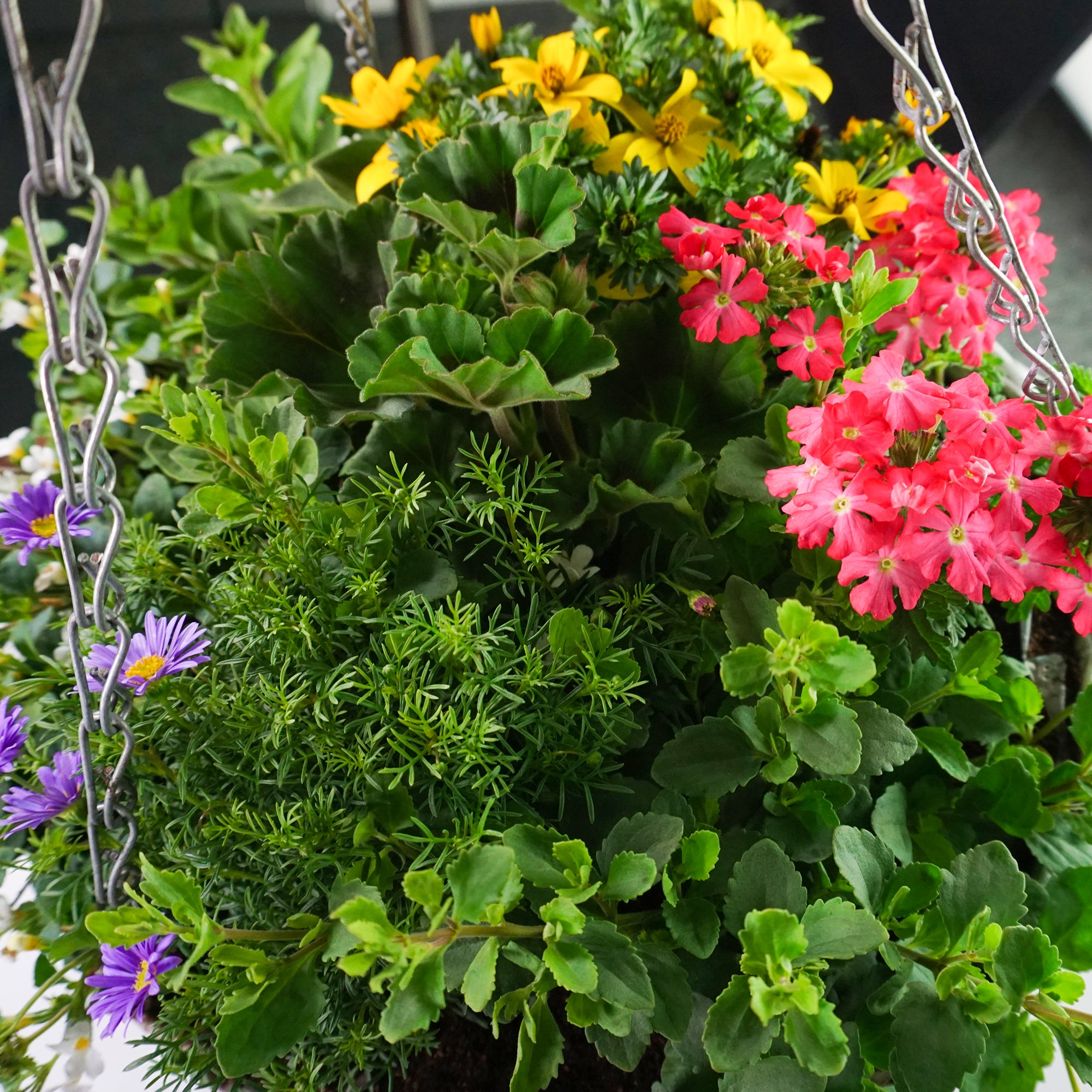 Feed hanging basket plants weekly with a liquid fertilizer to keep blooms coming all season. Regular deadheading also encourages new flowers and keeps baskets looking fresh.