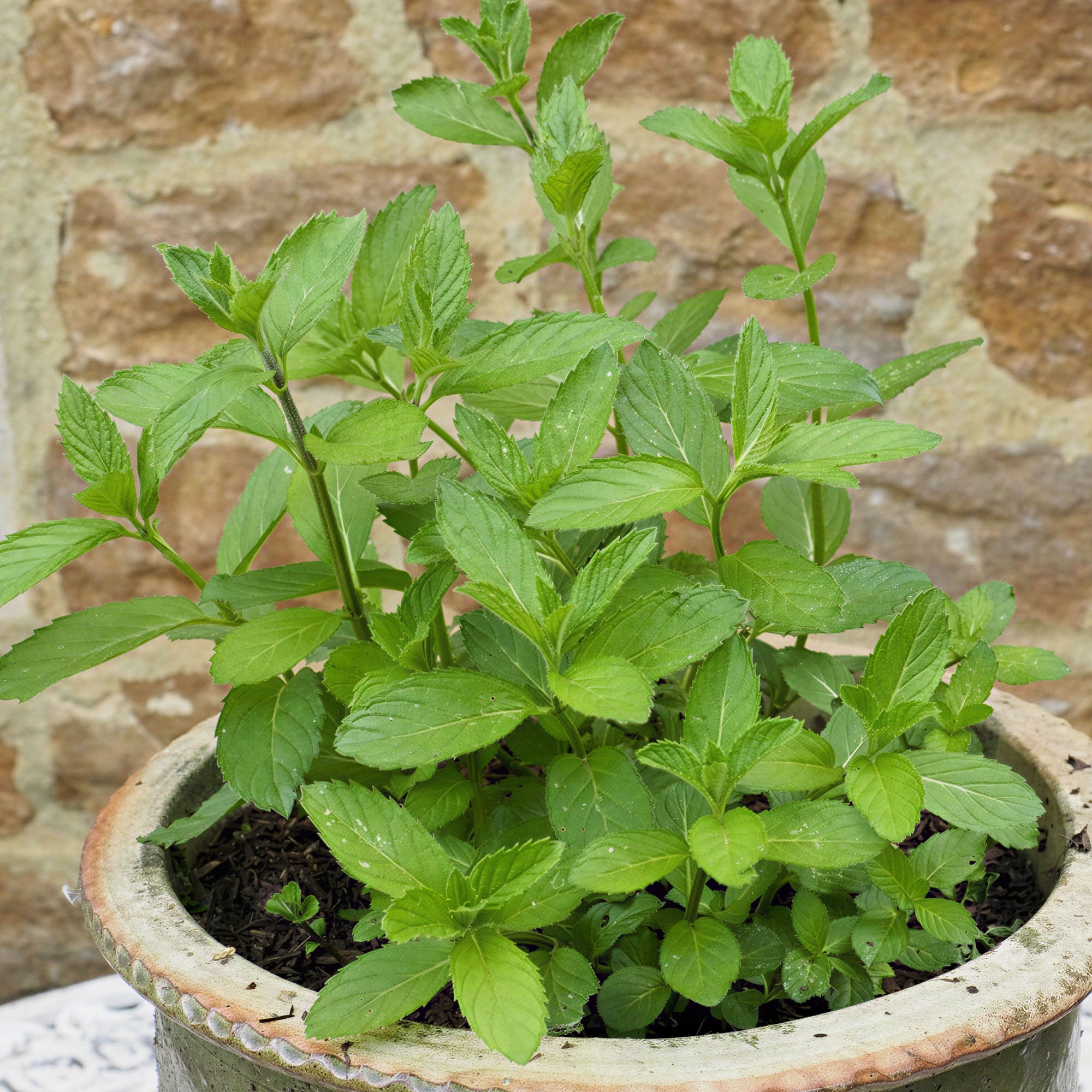 Keep Mint 'Swiss' well-watered to ensure the leaves remain crisp and full of flavour. If the soil becomes too dry, the plant will go dormant and the foliage will shrivel until moisture returns.
