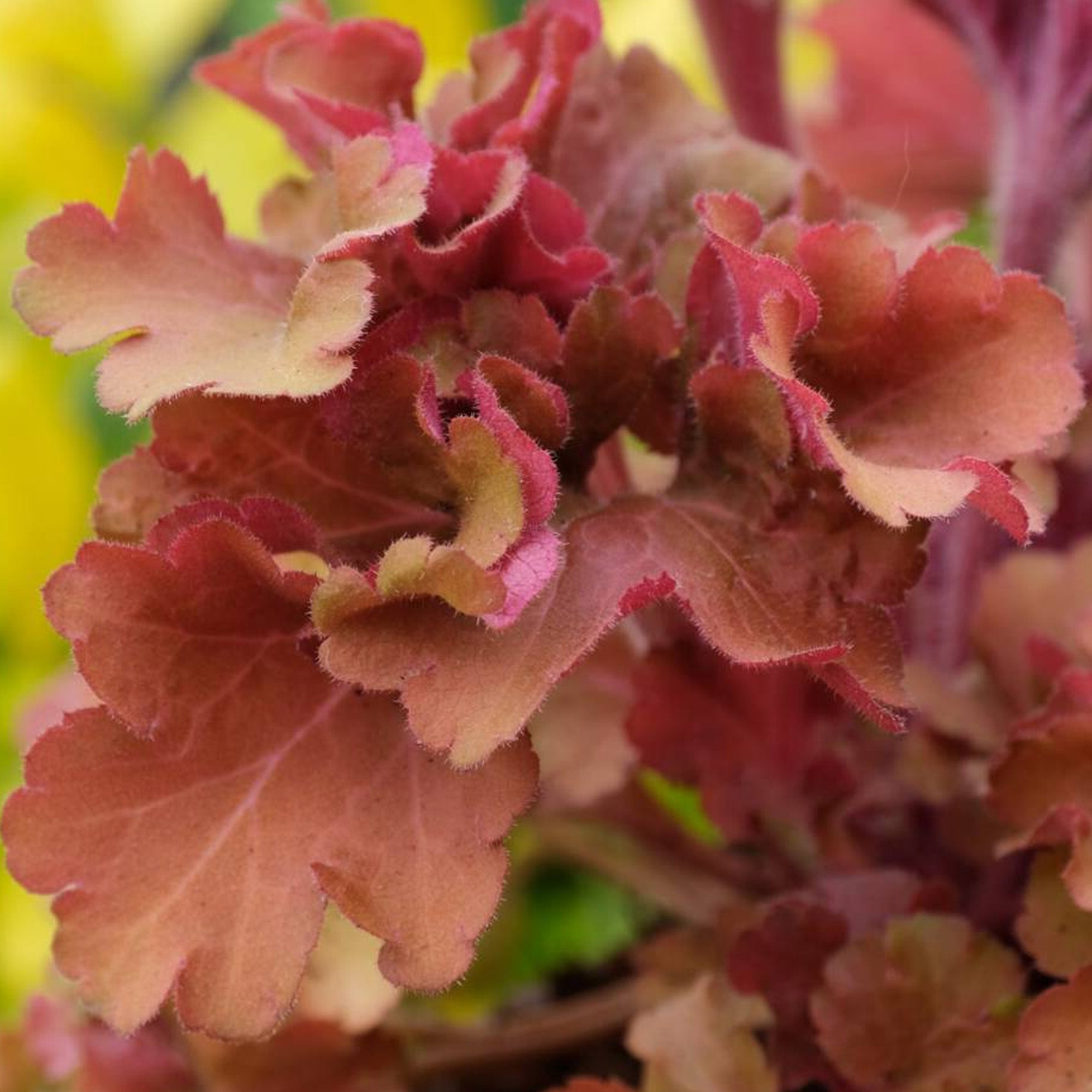 Heuchera Frilly, also known as Coral Bells, with its exquisite fringed foliage, adds a touch of sophistication to any garden or landscape. This perennial plant forms a compact mound and has an ultimate height and spread of 0.35m, making it versatile for various landscaping applications such as borders, rock gardens, or ground cover. The lacy leaves of Frilly create a soft and graceful texture, enhancing the overall aesthetic appeal of the garden.