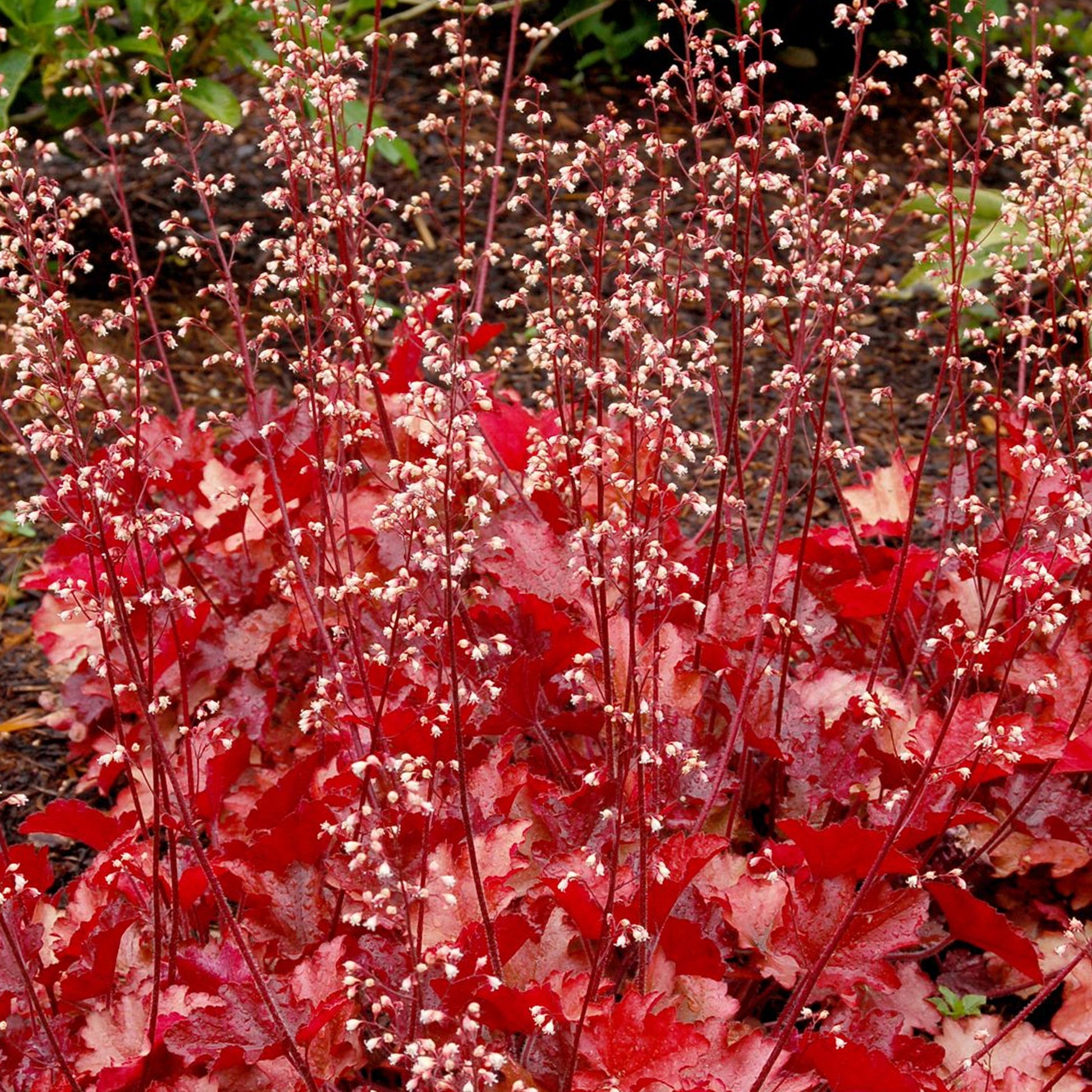 Heuchera plants thrive with a layer of mulch to retain moisture and keep the roots cool during hot weather.
