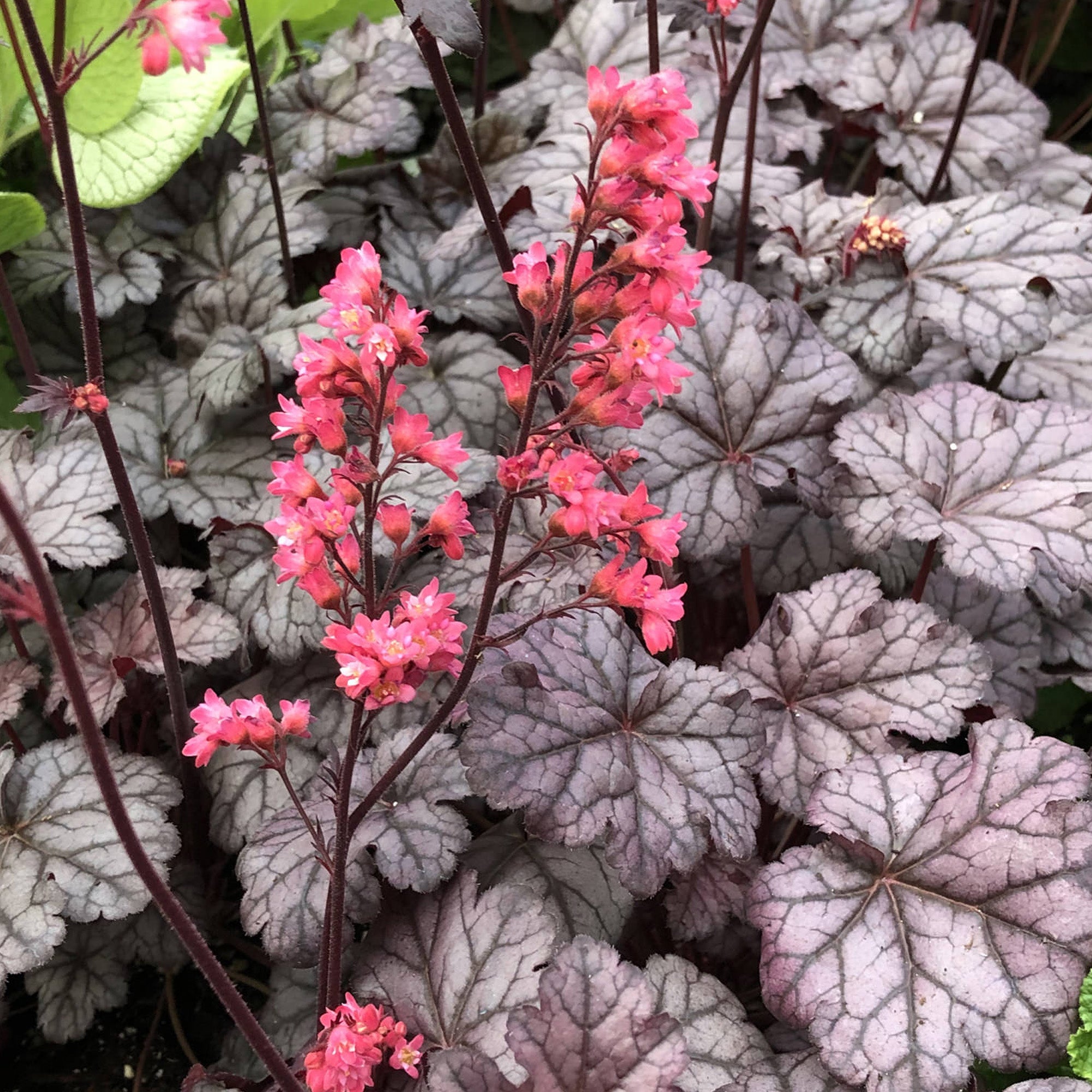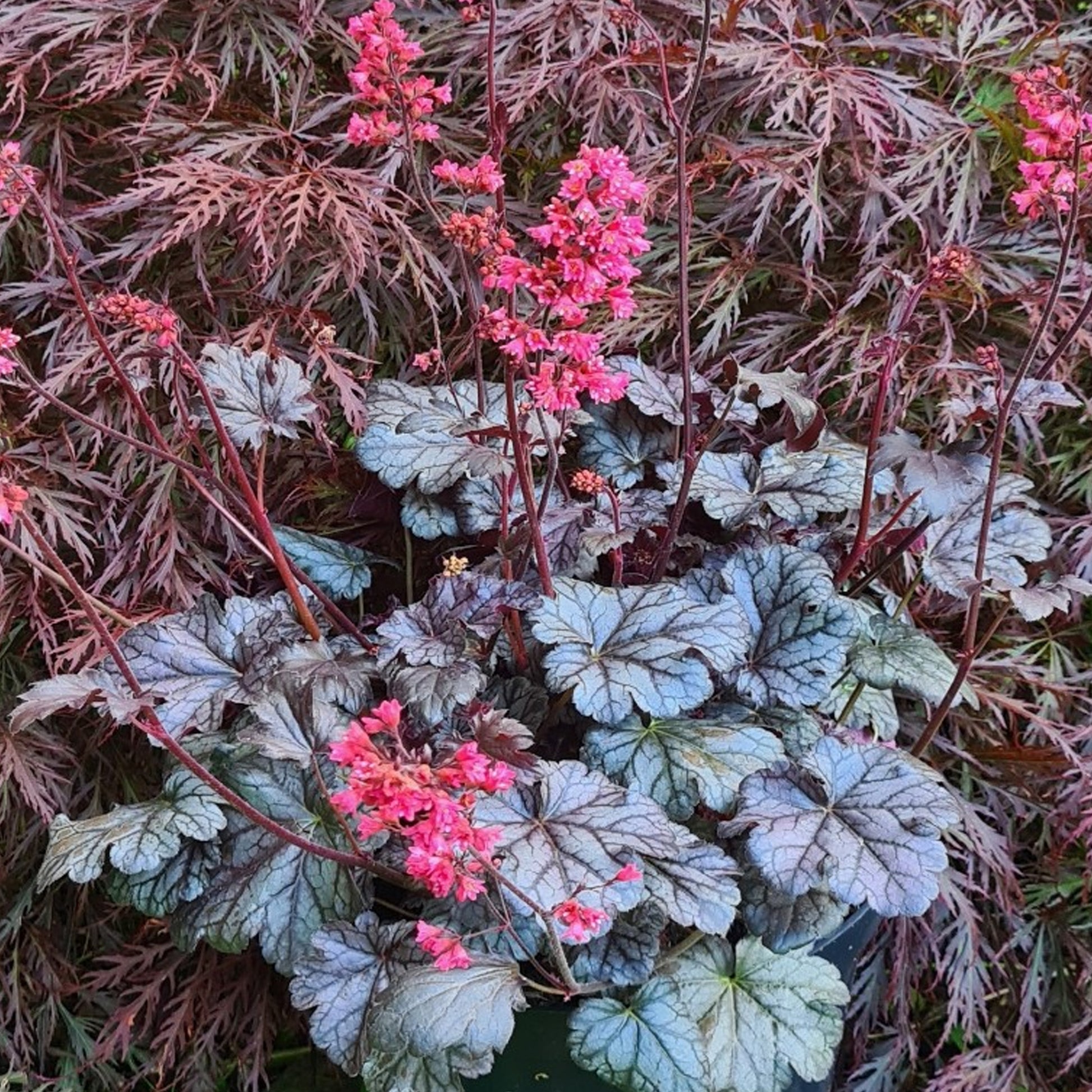Heuchera Timeless Treasure, also known as Coral Bells, is a standout in any garden with its distinct foliage and easygoing nature. The deep purple-black leaves are intricately veined and give the plant a unique appearance. It forms a compact mound, growing to an ultimate height and spread of 0.35m, making it a very versatile choice. During the spring and early summer months it will produce deep pink-red flowers on upright stems, giving this Heuchera an extra dimension of interest.