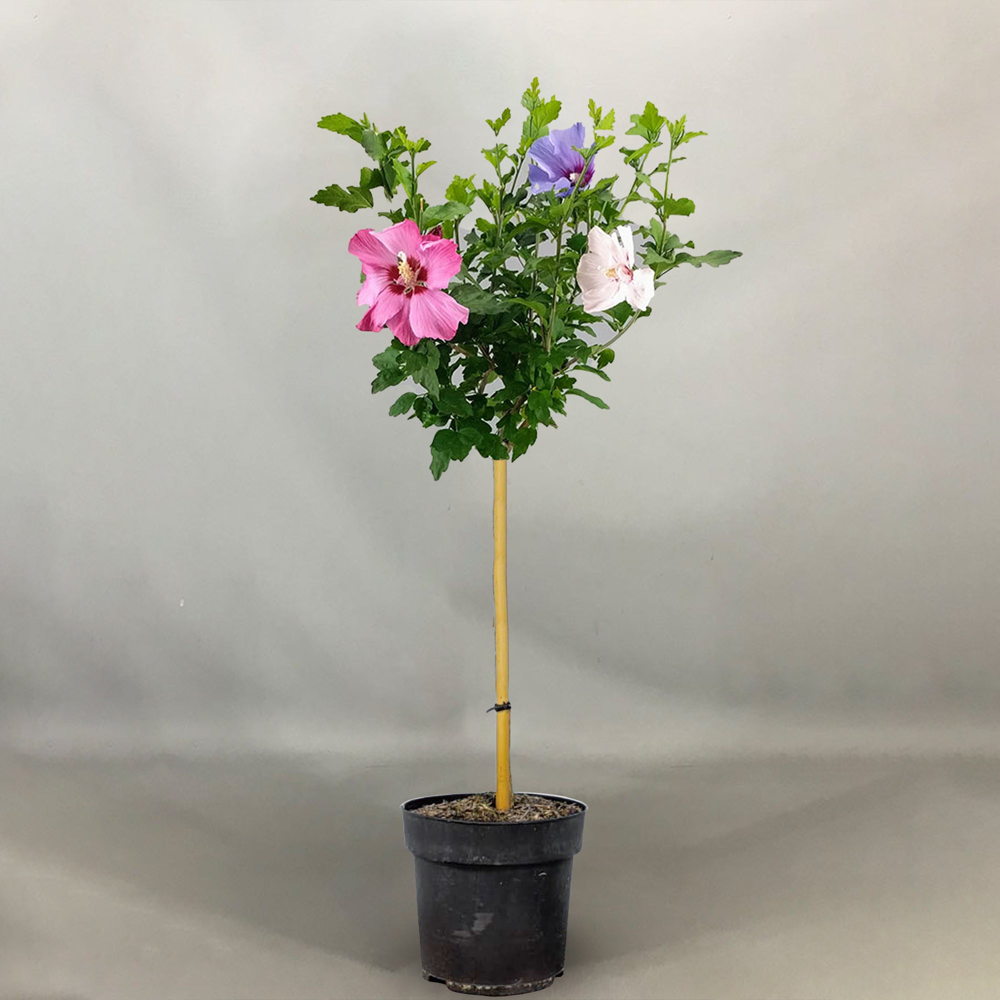 Hibiscus 'Tricolour’ is a beautiful ornamental tree that has gorgeous green foliage which grows in a spherical shape. During Spring and Summer, they will bloom tricolour flowers that will brighten up your patio, border, mixed containers and small garden. During the Autumn season, the tree will display a striking warm colours - making it very pleasing to the eye, prior to falling over Winter.
