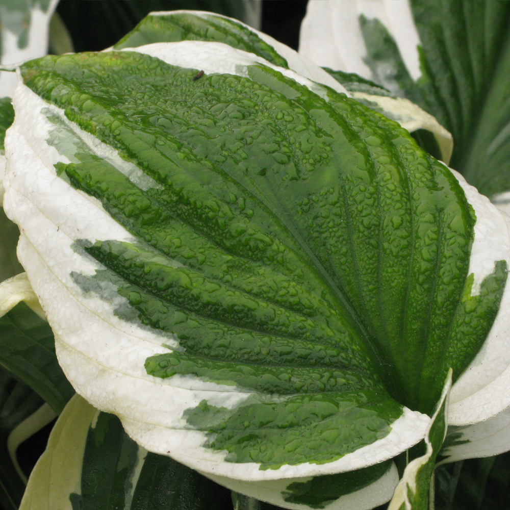 Puckered, olive-green leaves with irregular, white margins and spikes of funnel-shaped, lavender-blue flowers in July and August. This vigorous, variegated hosta is perfect for illuminating shady areas of the garden. One of our recommended plants, it makes an eye-catching groundcover plant for a fertile, moist, well-drained border.