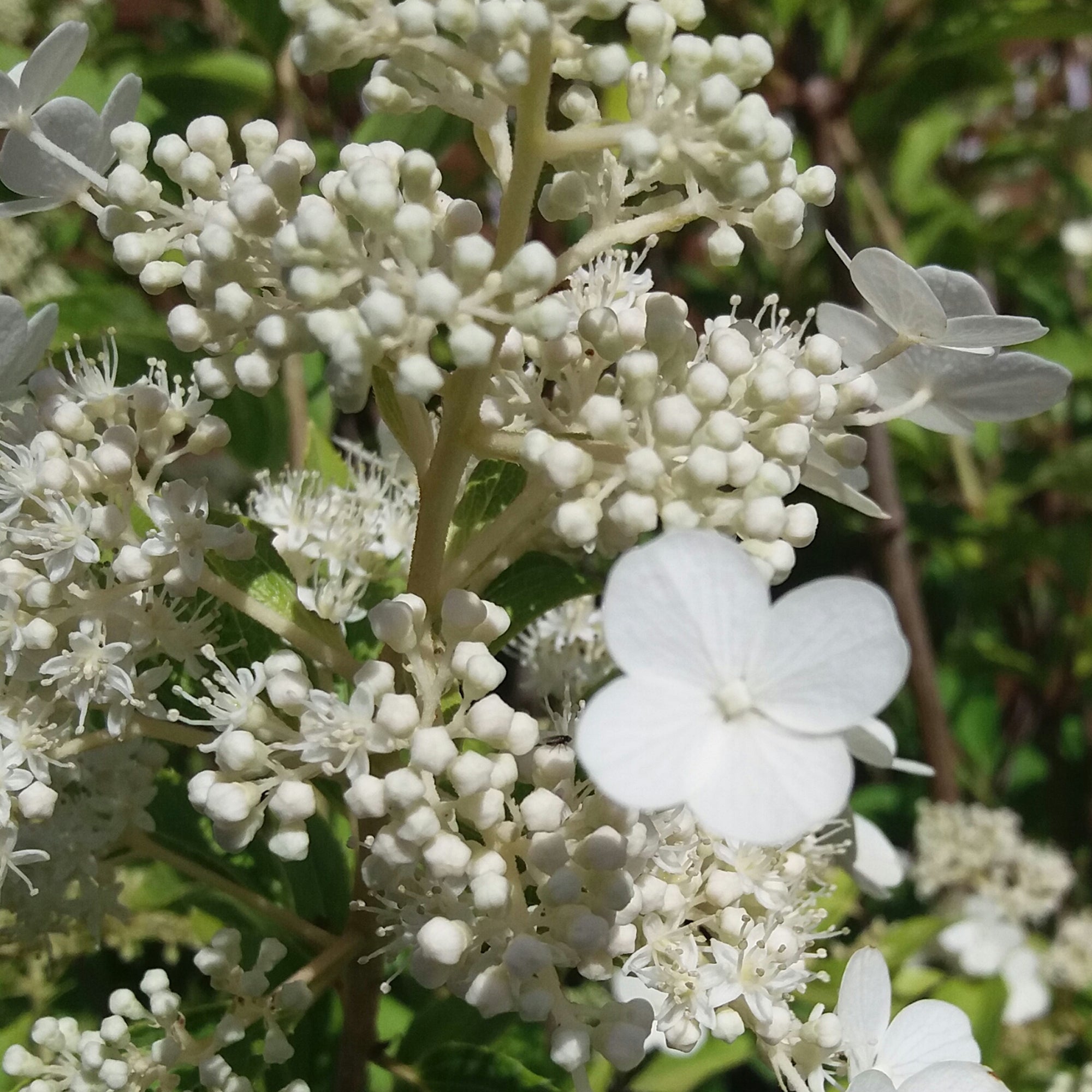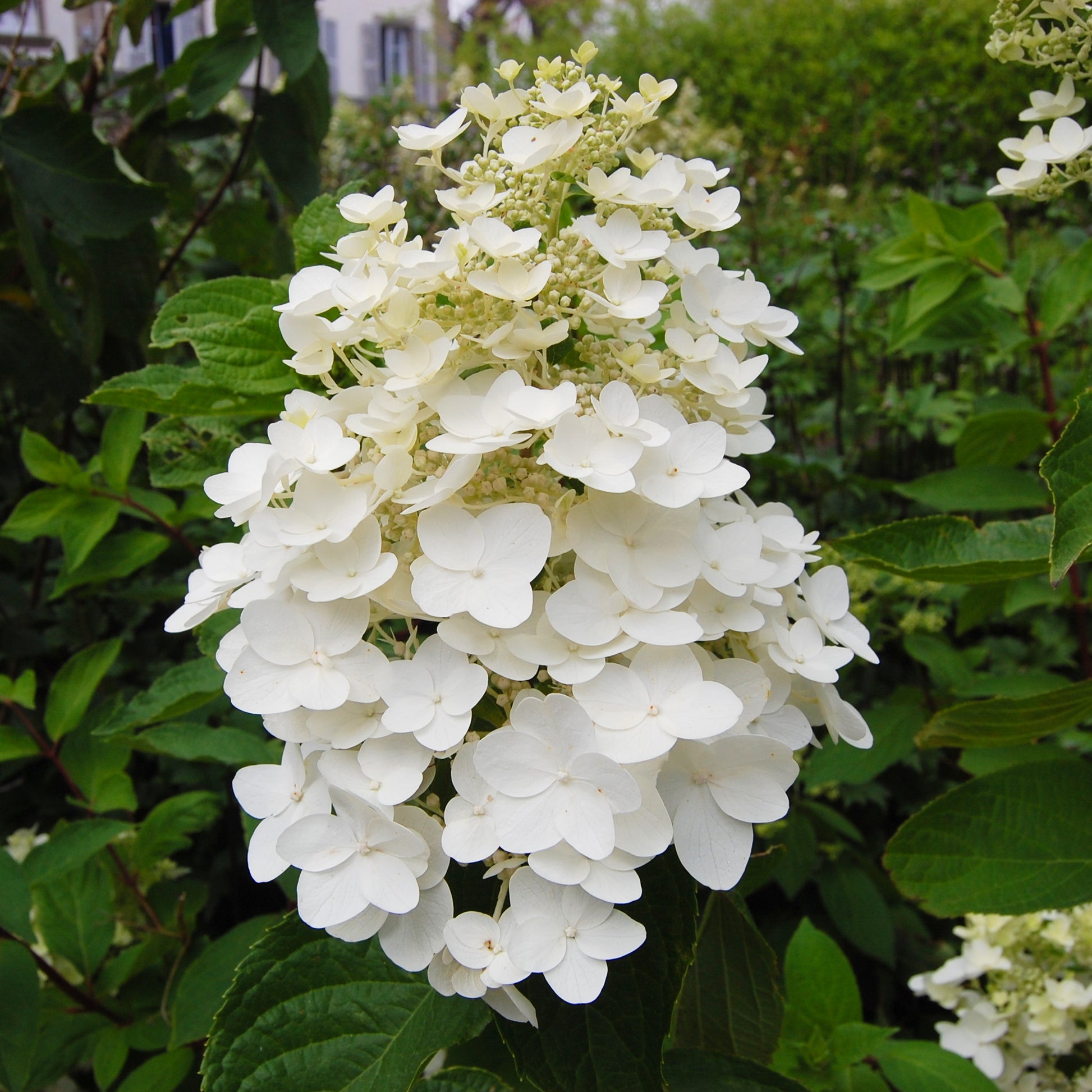 An interesting deciduous variety with large, glossy mid-green leaves. The Hydrangea ‘Kyushu’ is native to Japan and Southern China, with beautiful conical flower spikes appearing on upright stems above the foliage and carrying clusters of small cream-white flowers from late Summer and into the early Autumn months.