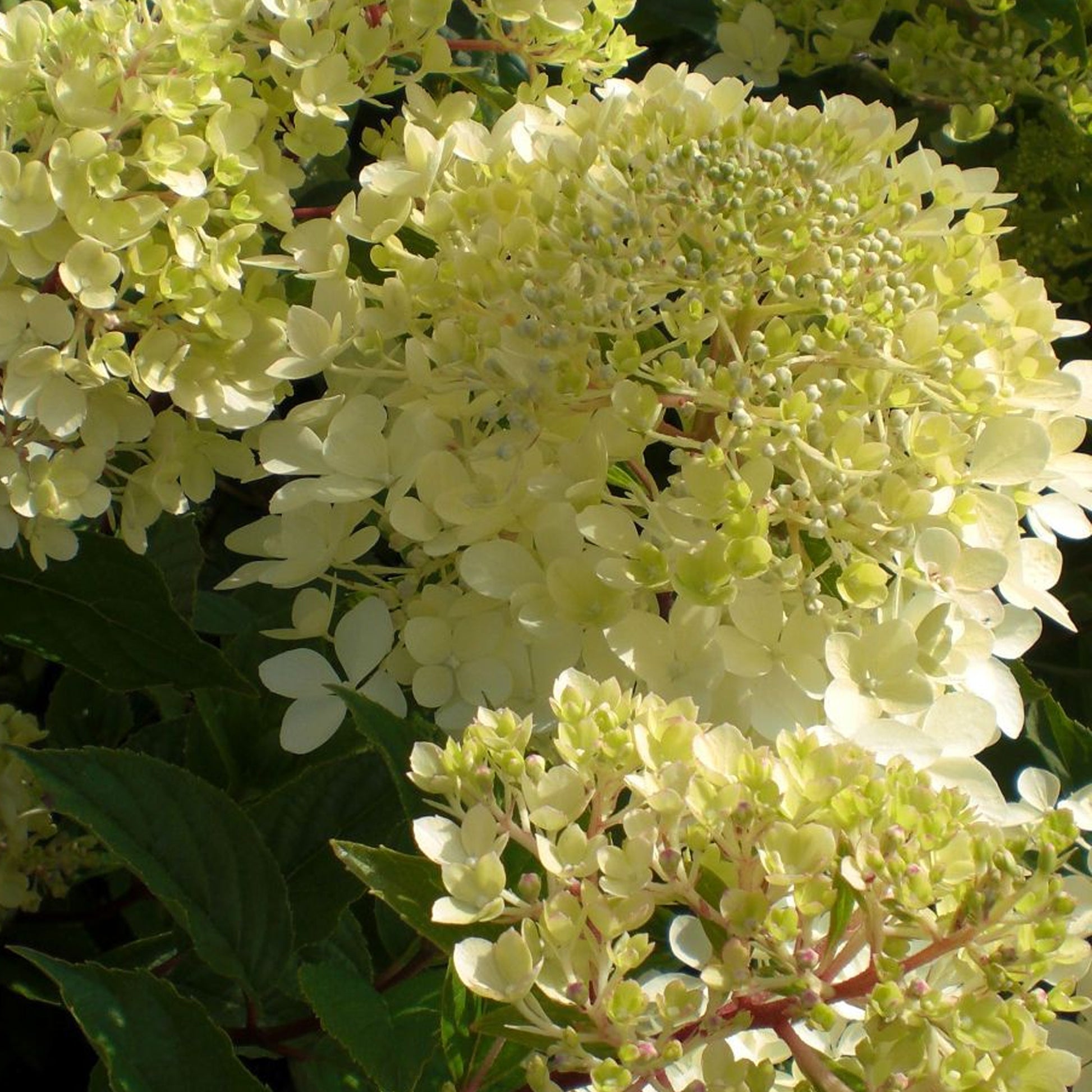 A very dense and heavy bloomer with an upright growth habit, the Hydrangea ‘Phantom’ is a great option for those looking to add some structure and shape to the garden along with a spray of colour. The large, ovate yellow green leaves grow heavily all over the plant, sitting beneath rigid, strong stems bearing dense clusters of small, cream-white flowers from mid-Summer, which gain hues of pink nearer to the Autumn months.